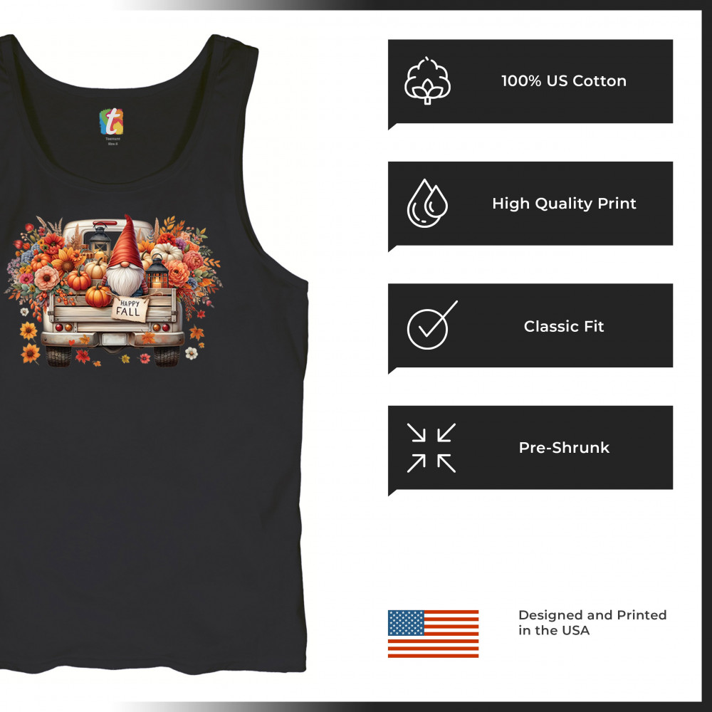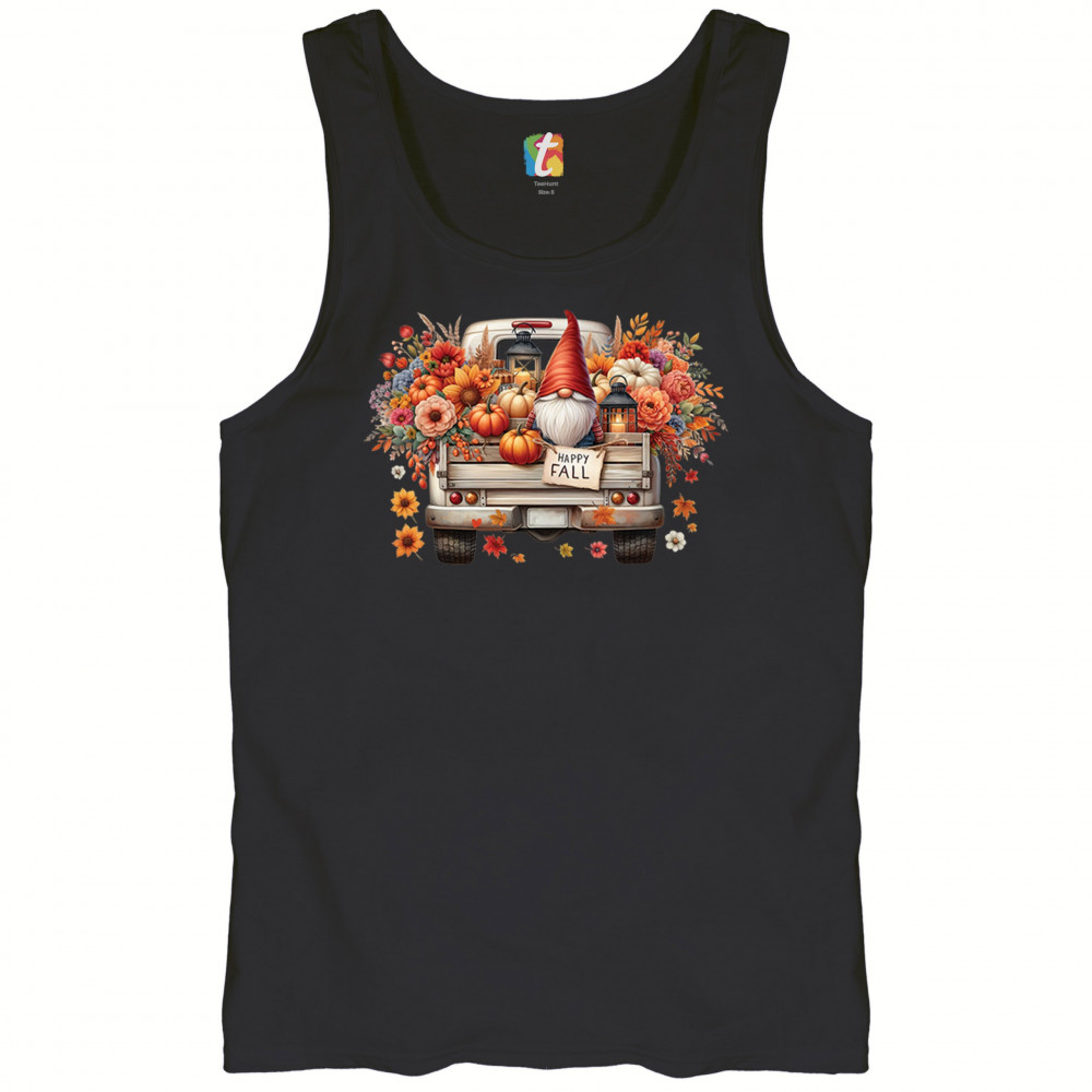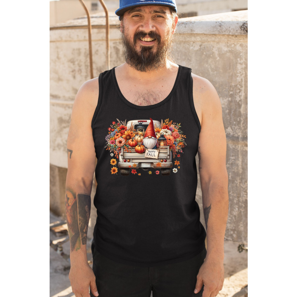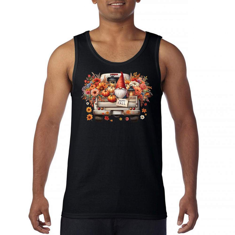 FALL GNOME TRUCK men's tank top pumpkin patch cozy thanksgiving harvest black