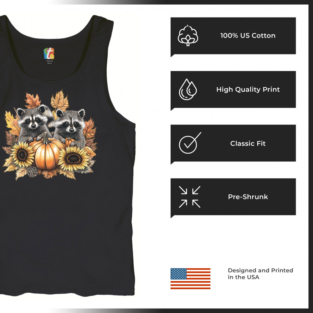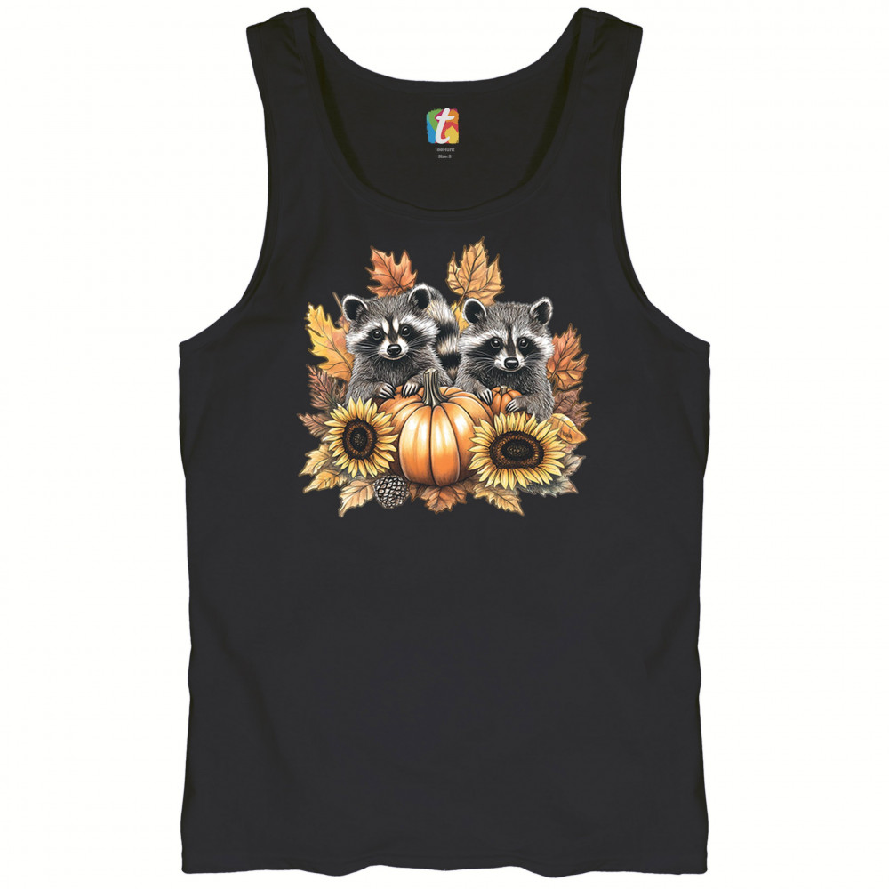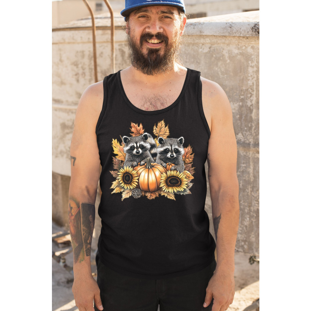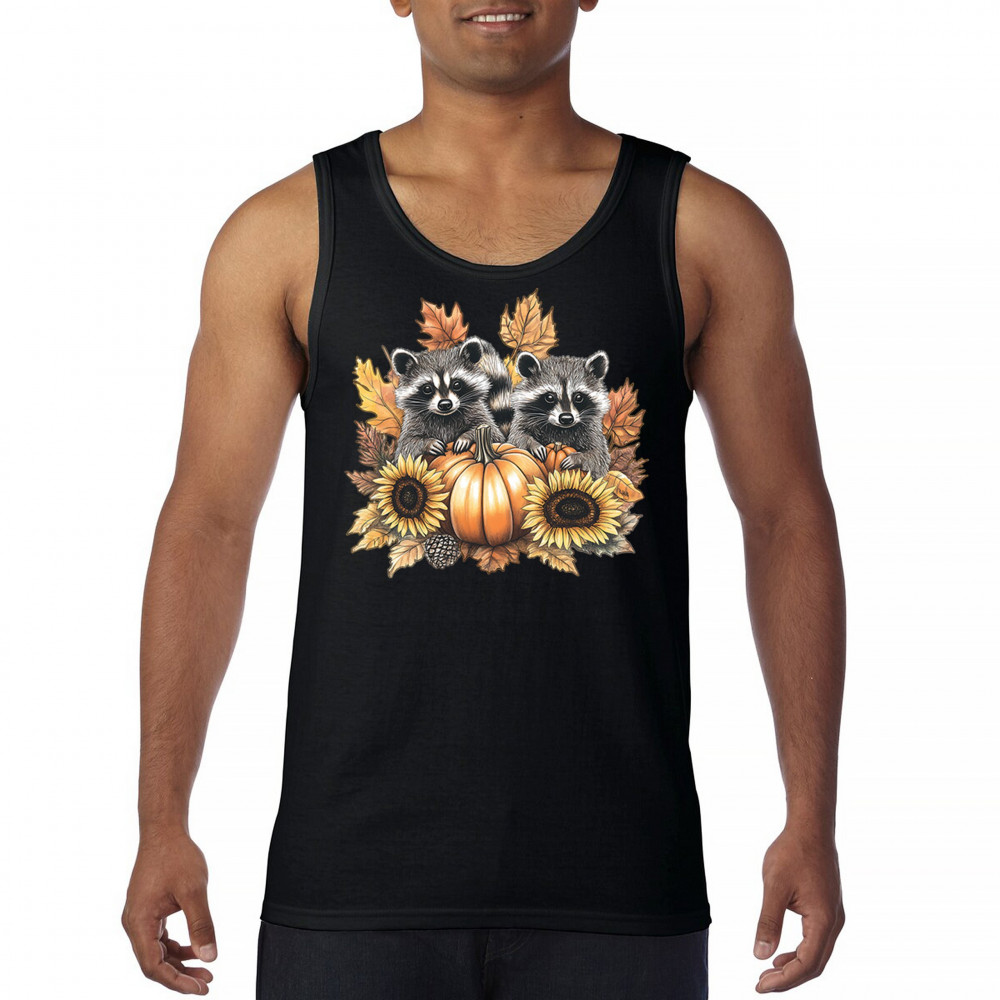 FALL RACCOONS men's tank top thanksgiving day sunflower pumpkin patch black