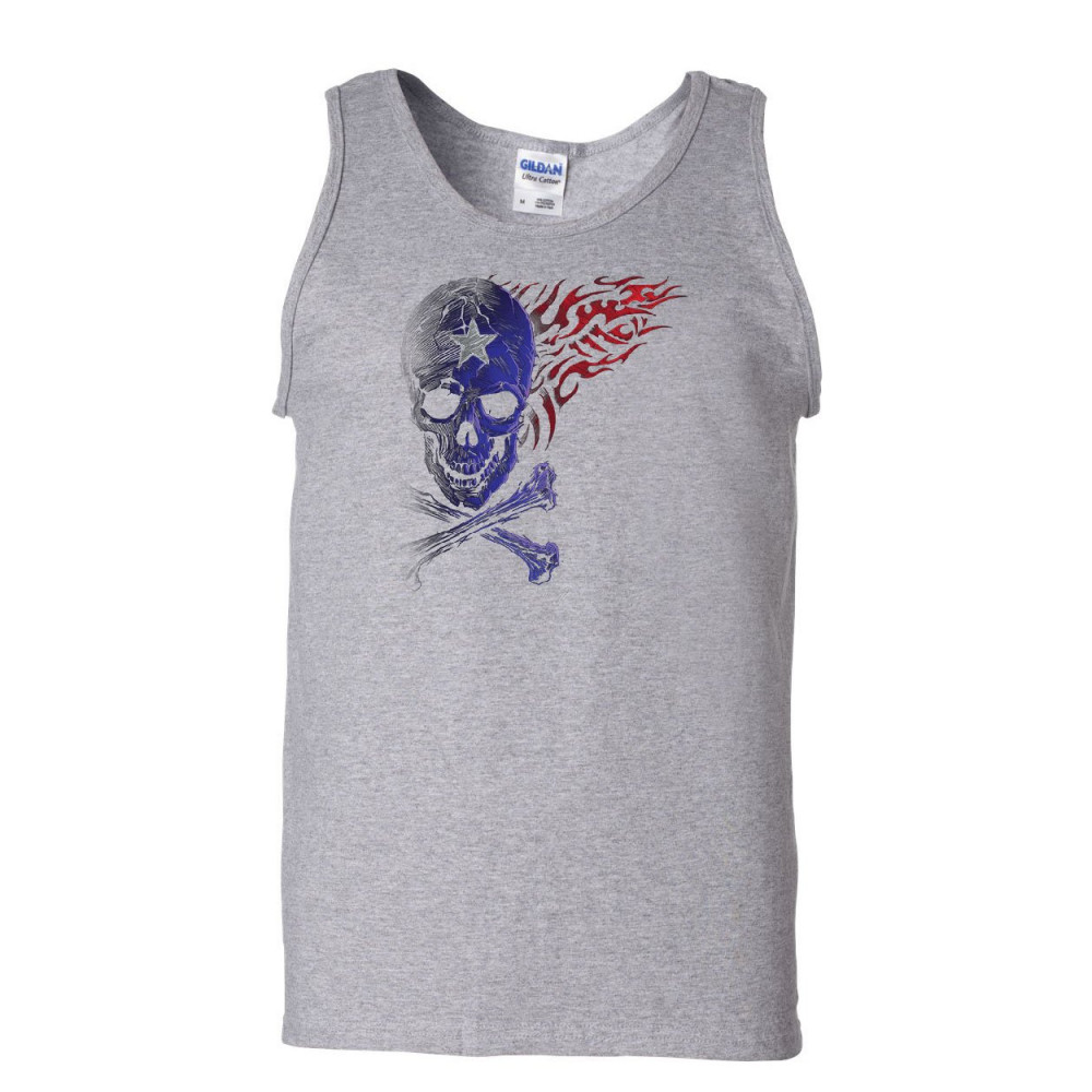 SKULL FACE WITH CROSSBONES fantacycle skull crossbones tank top american pride tribal flame sleeveless gray