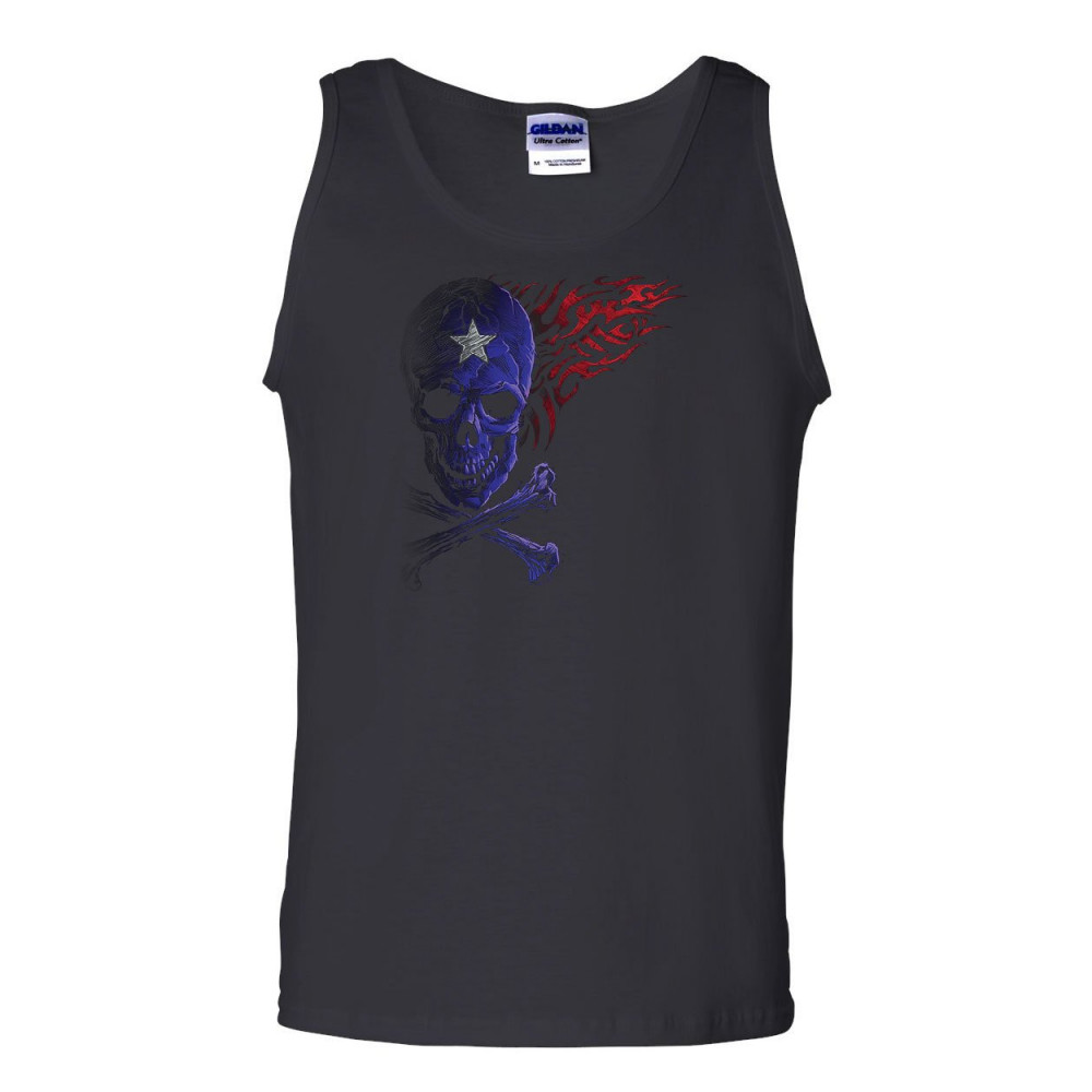 SKULL FACE WITH CROSSBONES fantacycle skull crossbones tank top american pride tribal flame sleeveless black