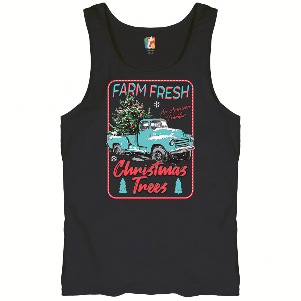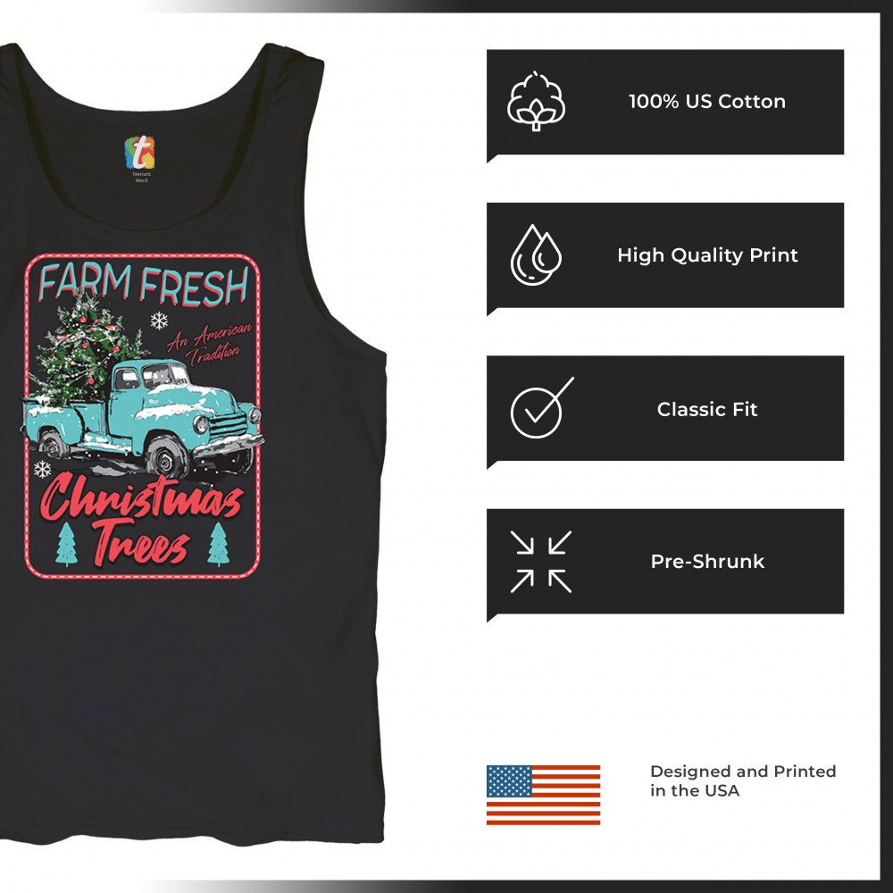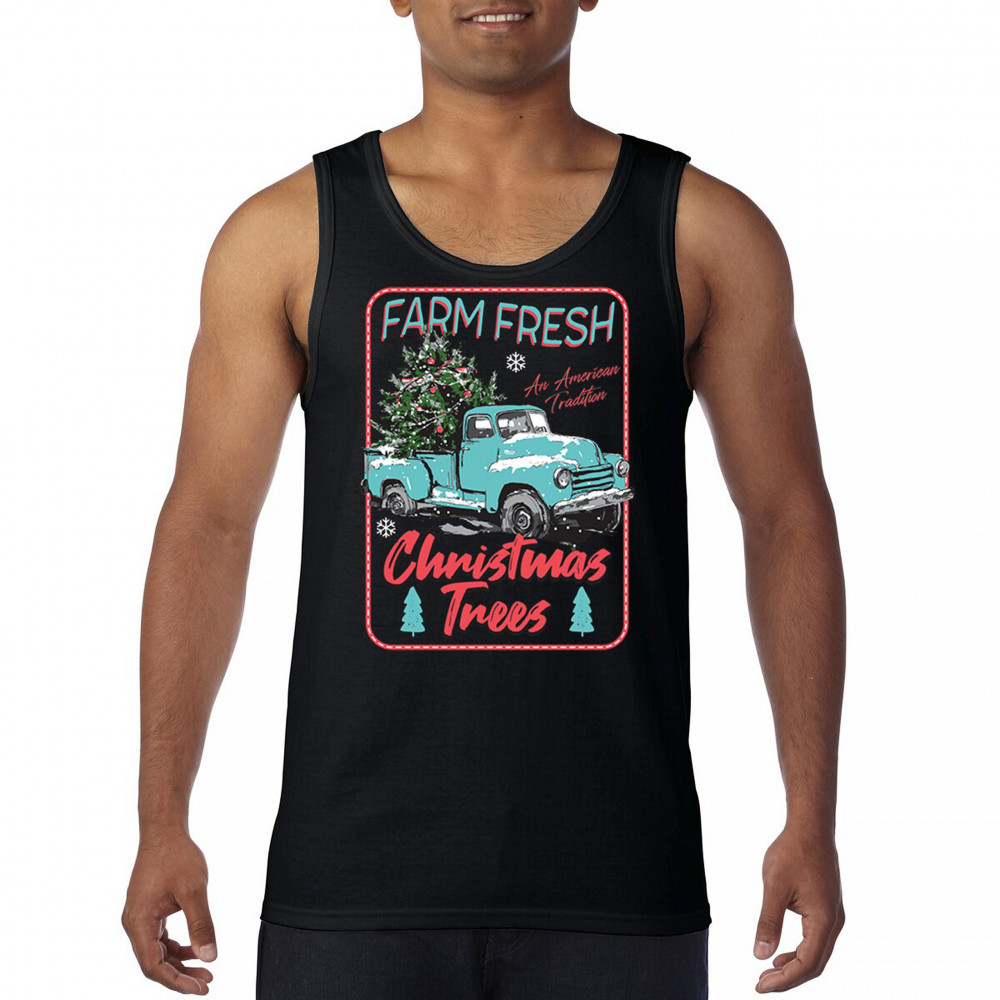 FARM FRESH CHRISTMAS TREES tank top american tradition retro truck men's top black