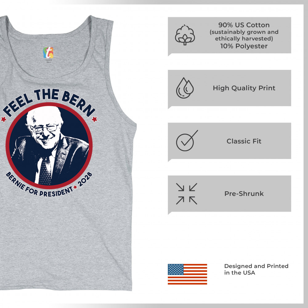 Show your commitment to democratic reform with this "Feel the Bern – Bernie for President 2028" design. Featuring Bernie Sanders’ portrait and patriotic colors, it’s perfect for political events, marches, or campaign volunteering. Wear it with pride at rallies, protests, or voter registration drives to back the progressive movement.