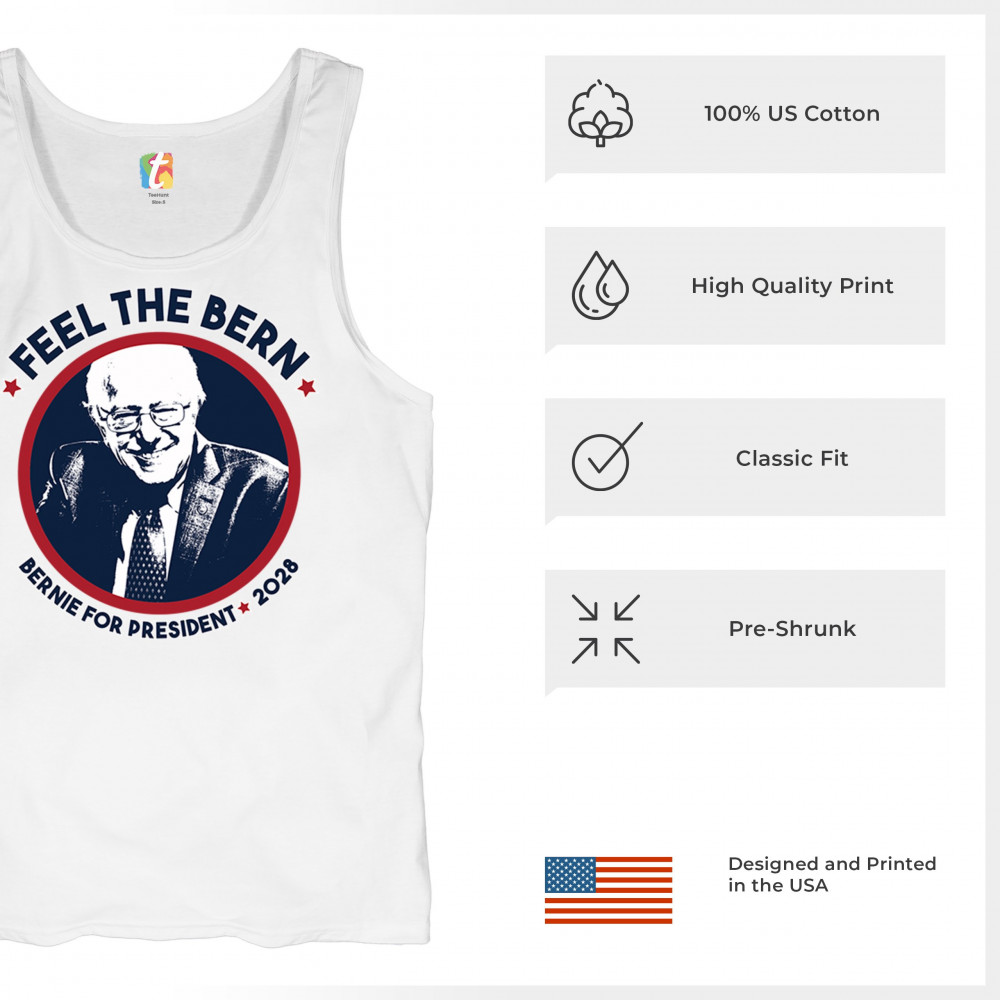 Show your commitment to democratic reform with this "Feel the Bern – Bernie for President 2028" design. Featuring Bernie Sanders’ portrait and patriotic colors, it’s perfect for political events, marches, or campaign volunteering. Wear it with pride at rallies, protests, or voter registration drives to back the progressive movement.