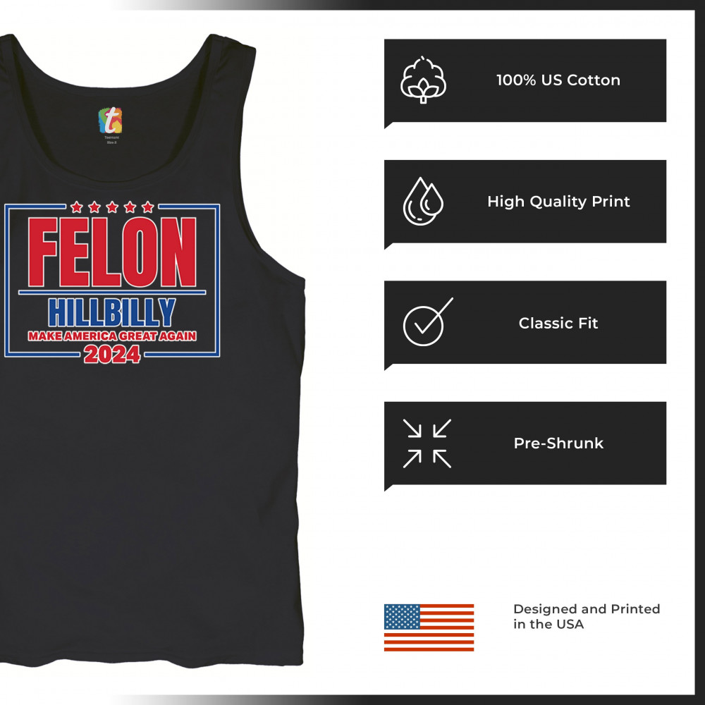 he "Felon Hillbilly 2024" design is perfect for Trump supporters, embodying conservative values and American pride.