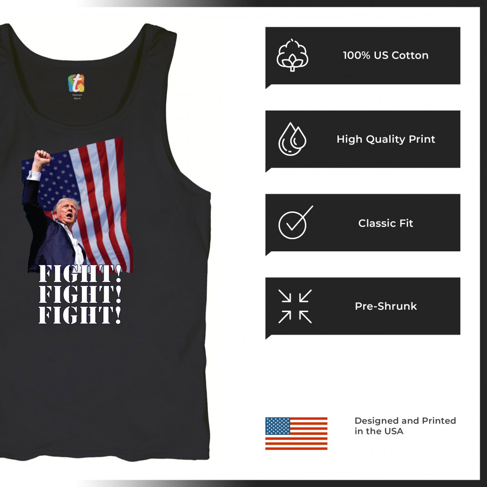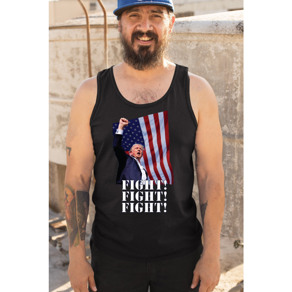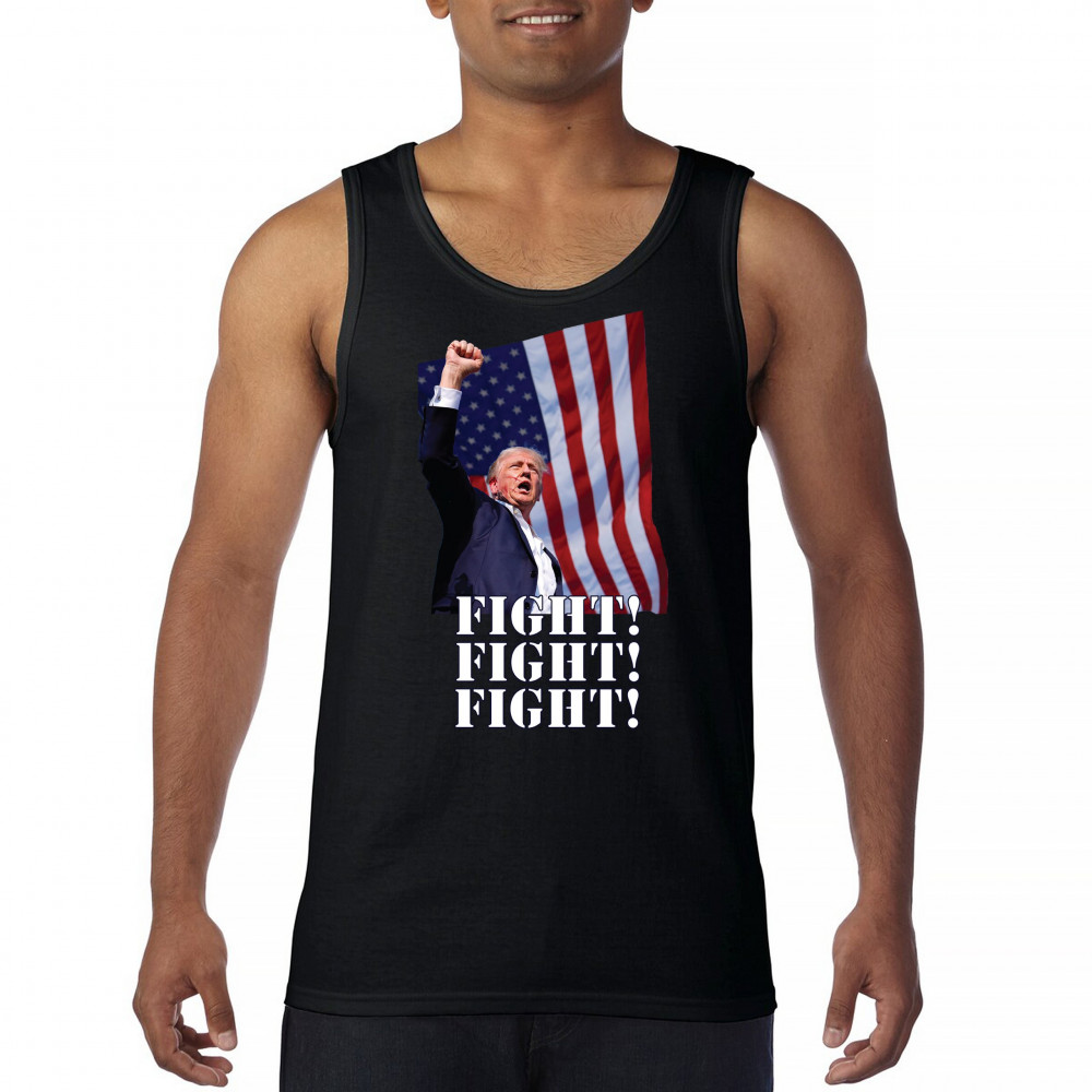 FIGHT! TRUMP 2024 tank top never surrender maga america first rally men's top black