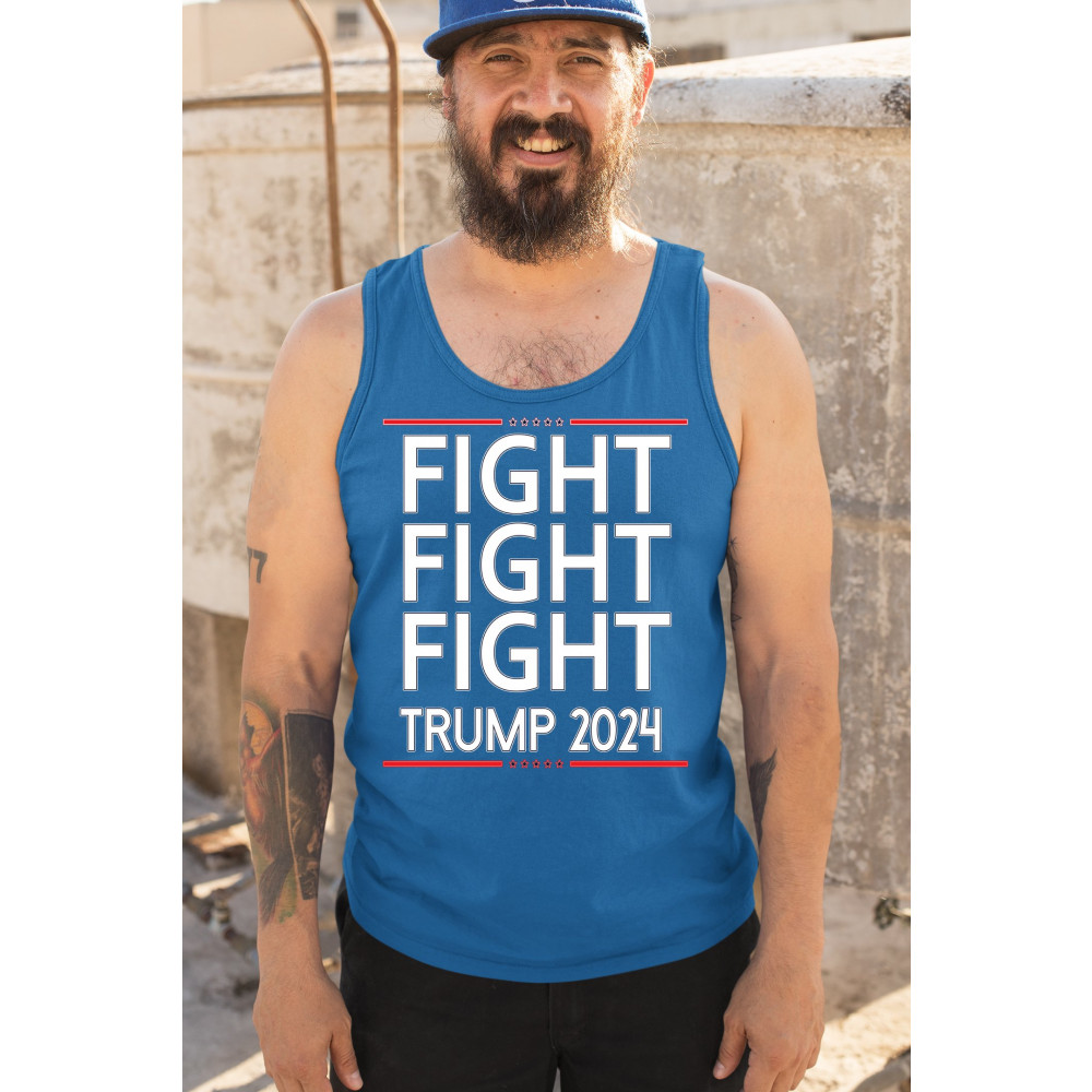 Show your Trump 2024 support with this bold "Fight Fight Fight" design. Perfect for rallies and everyday wear. Stand with America!