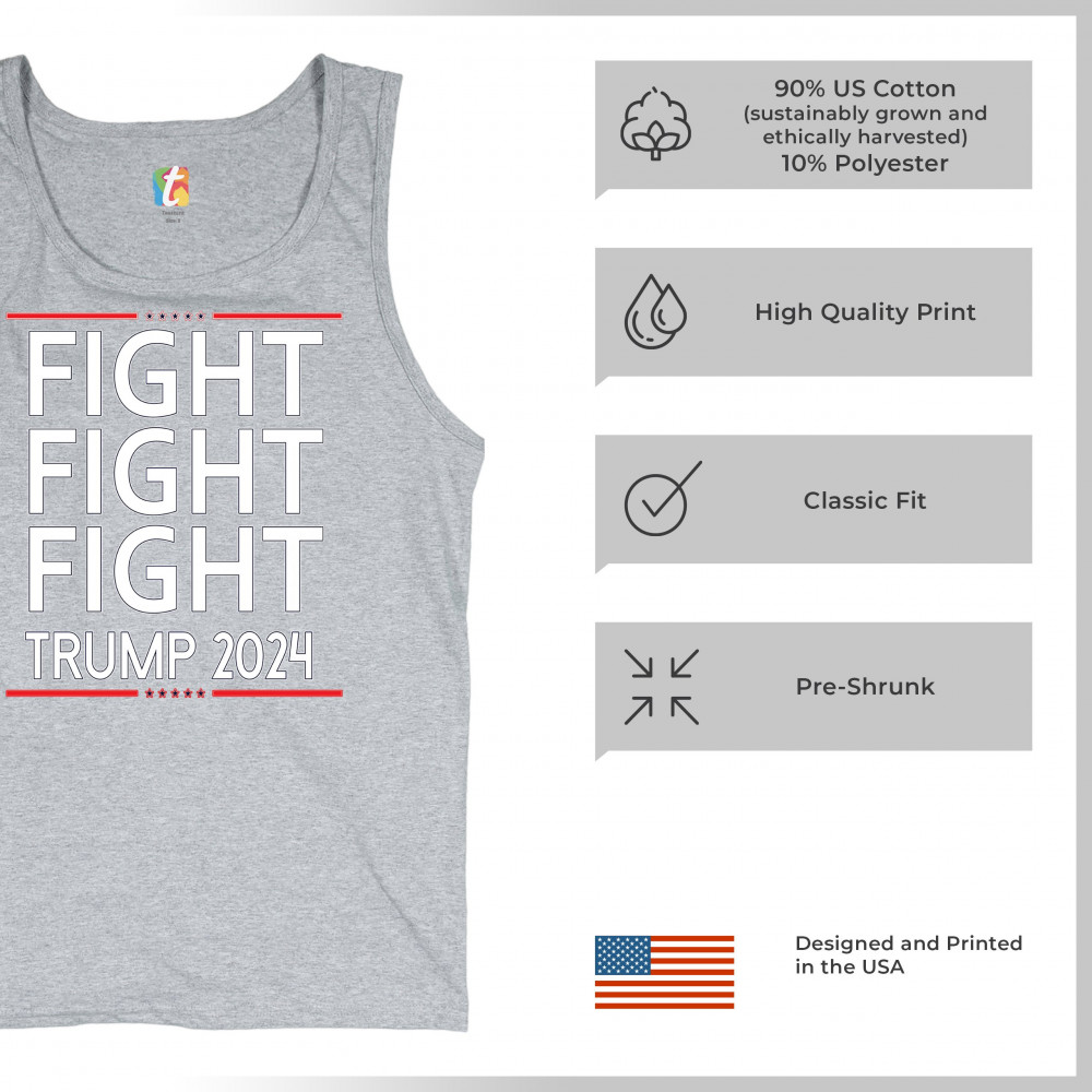 Show your Trump 2024 support with this bold "Fight Fight Fight" design. Perfect for rallies and everyday wear. Stand with America!