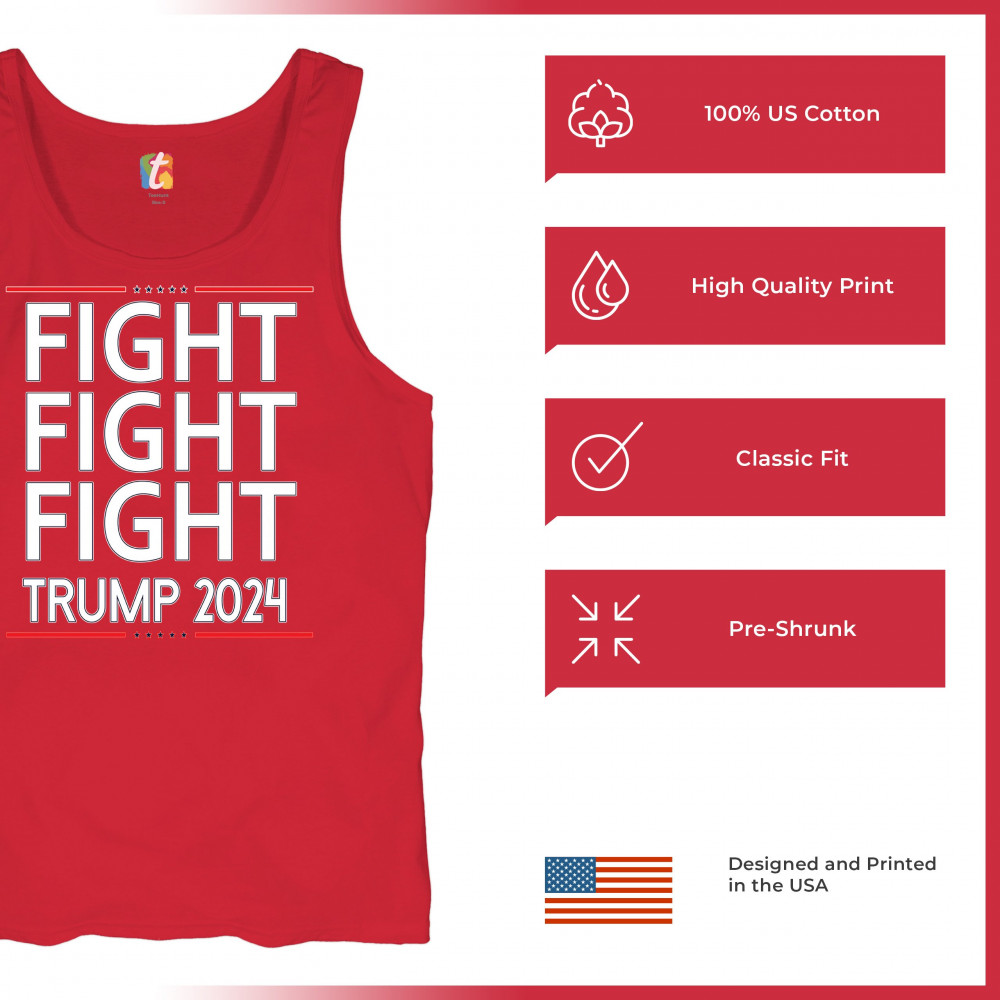 Show your Trump 2024 support with this bold "Fight Fight Fight" design. Perfect for rallies and everyday wear. Stand with America!
