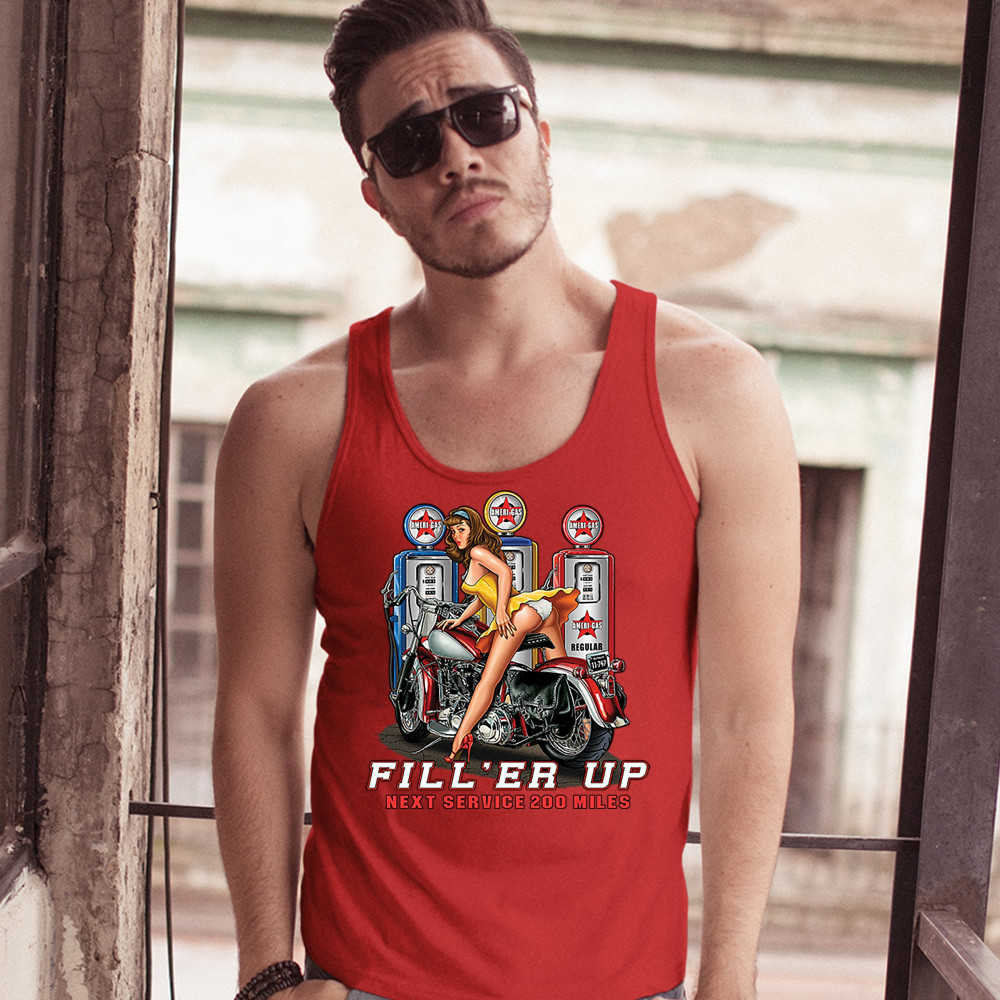 FILL 'ER UP tank top sexy pin-up girl biker rider live to ride men's top red