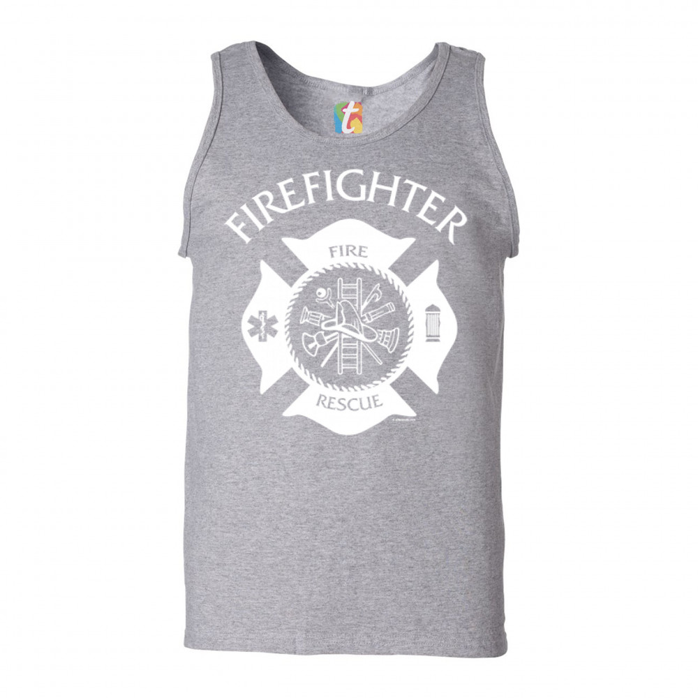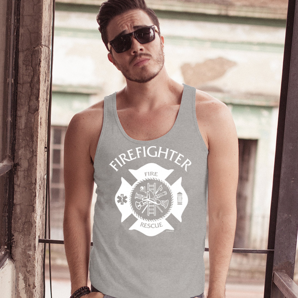 FIREFIGHTER EMBLEM tank top fire and rescue first responders men's top gray