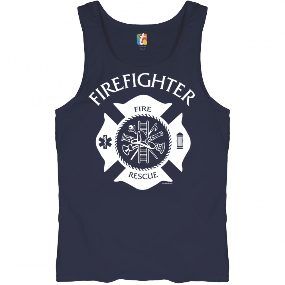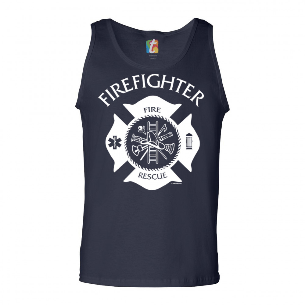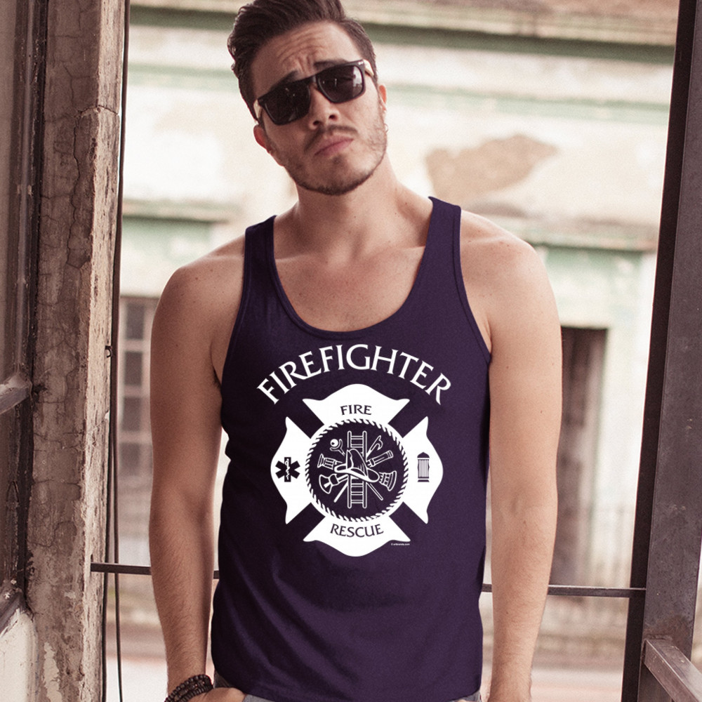 FIREFIGHTER EMBLEM tank top fire and rescue first responders men's top navy blue