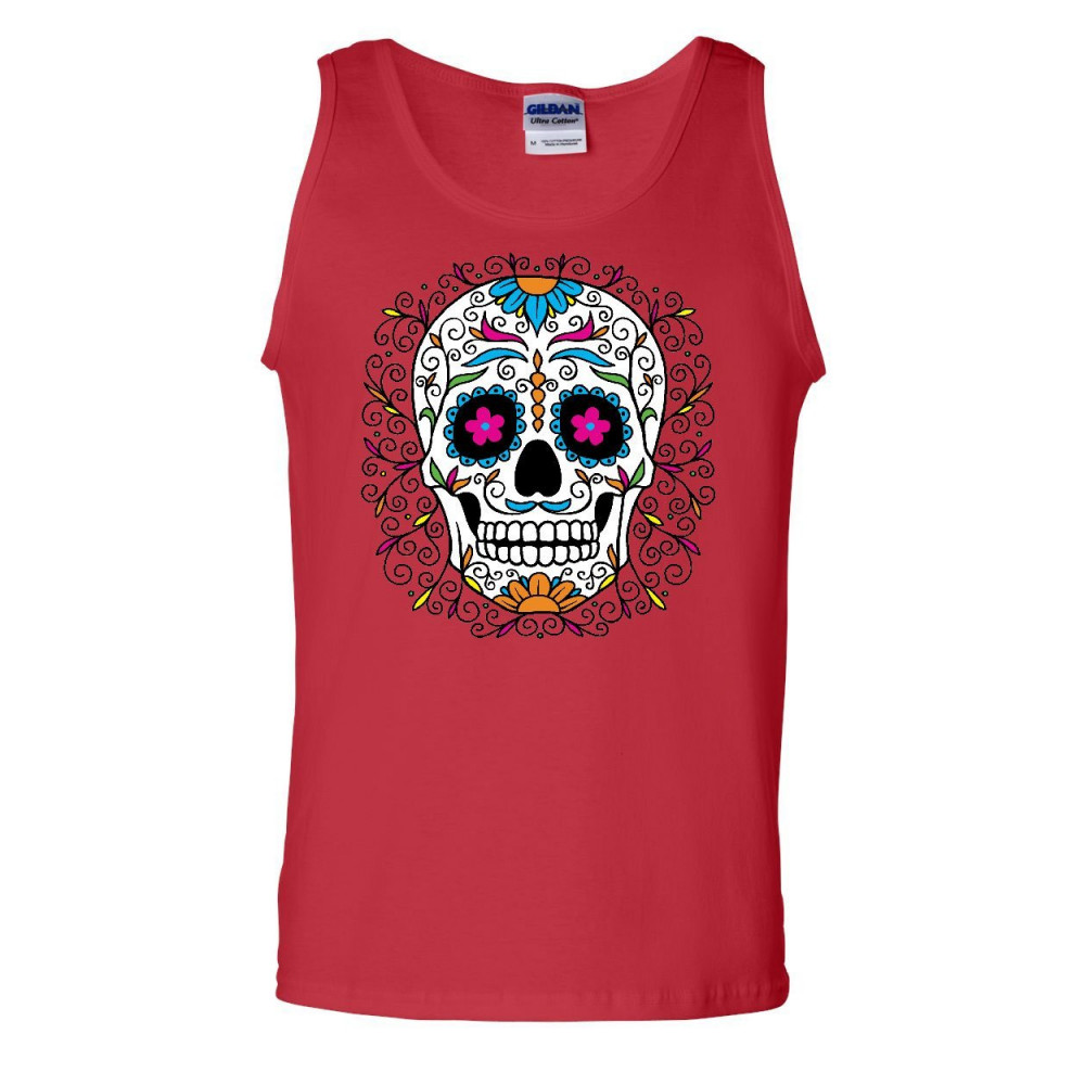 FLORAL SUGAR SKULL DAY OF THE DEAD tank top dia de los muertos red