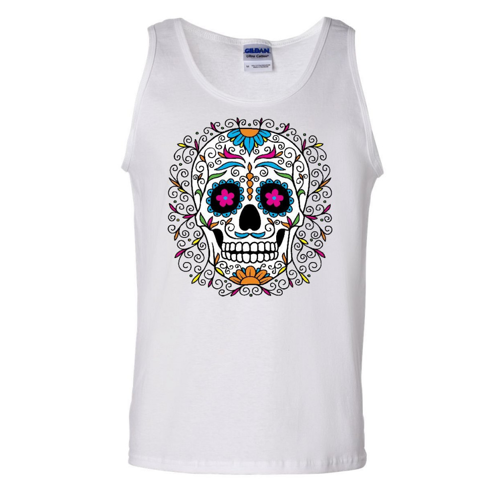 FLORAL SUGAR SKULL DAY OF THE DEAD tank top dia de los muertos white