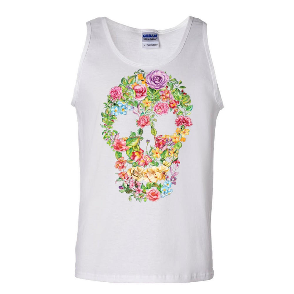 FLOWER SKULL tank top sugar skull calavera dia de los muertos sleeveless white