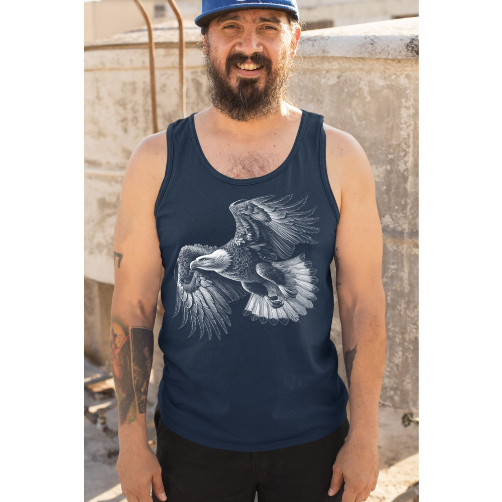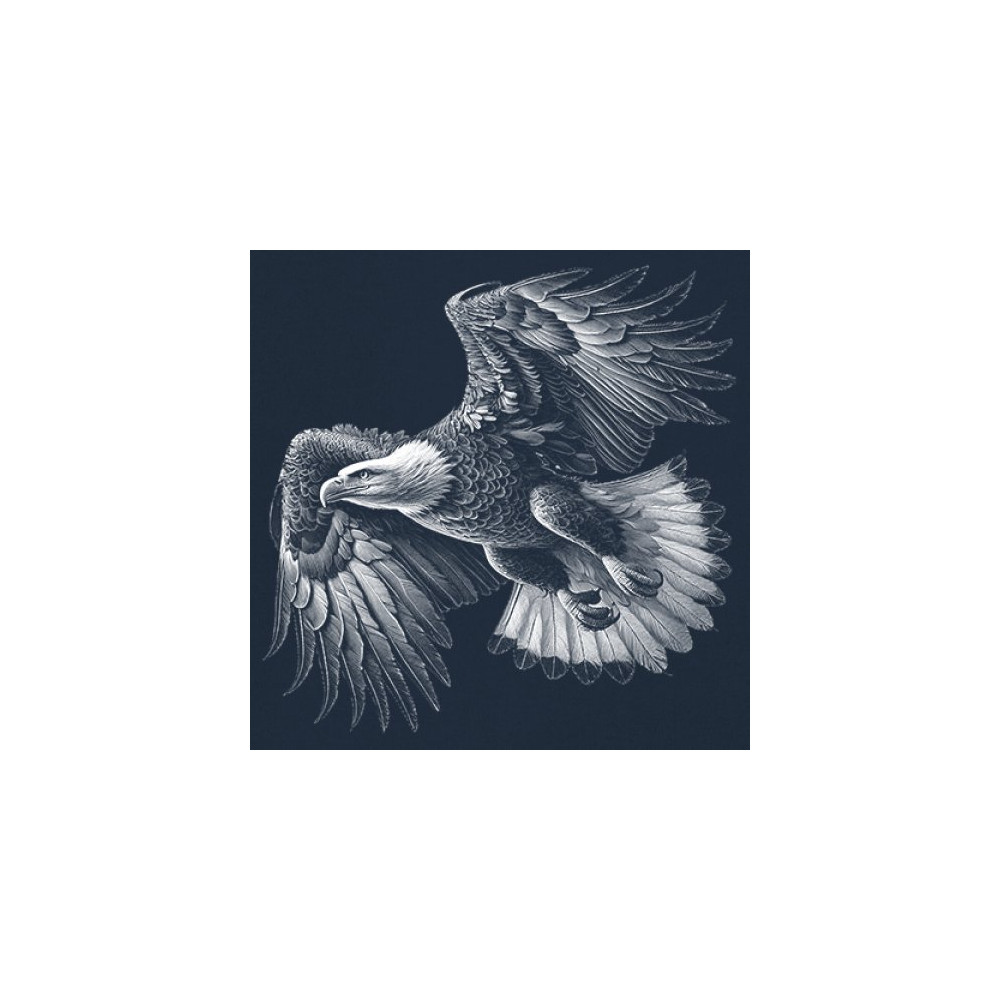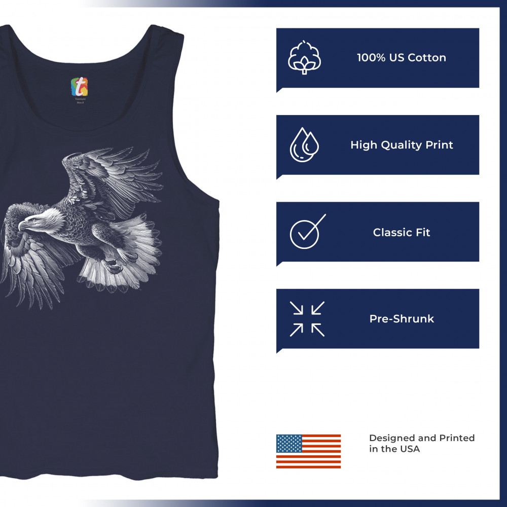 Celebrate American pride with this soaring bald eagle design. With wings extended and monochrome detail that symbolizes liberty and strength, it's perfect for patriots, veterans, and national holiday wear. A timeless tribute to freedom, this design is ideal for memorial events, rallies, and anyone who honors the red, white, and blue.