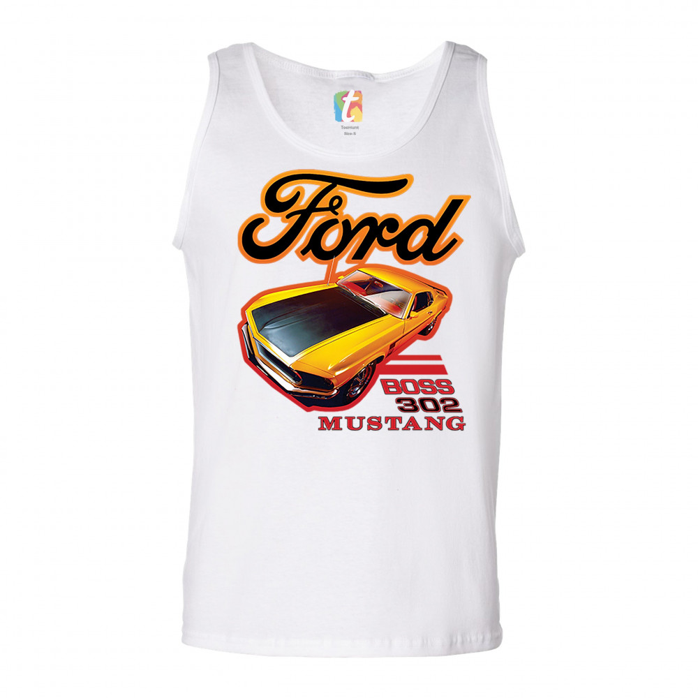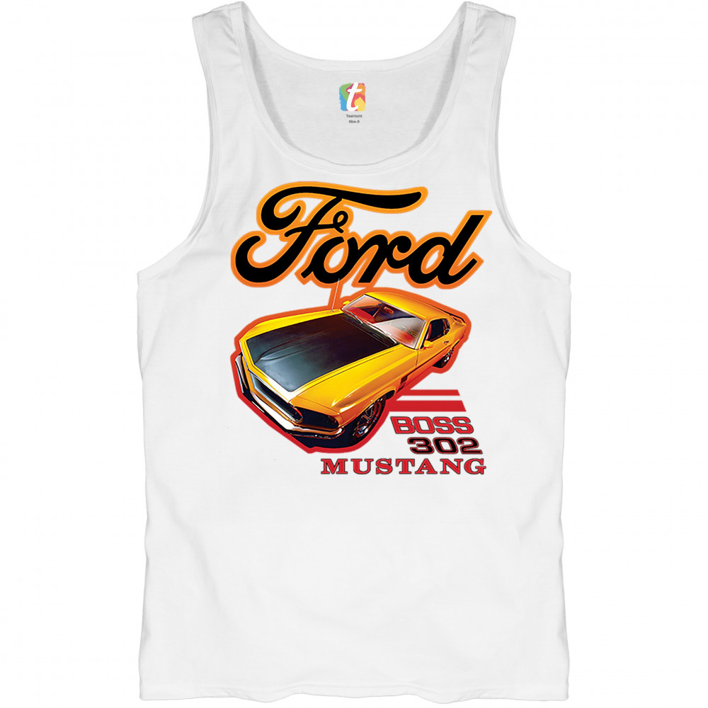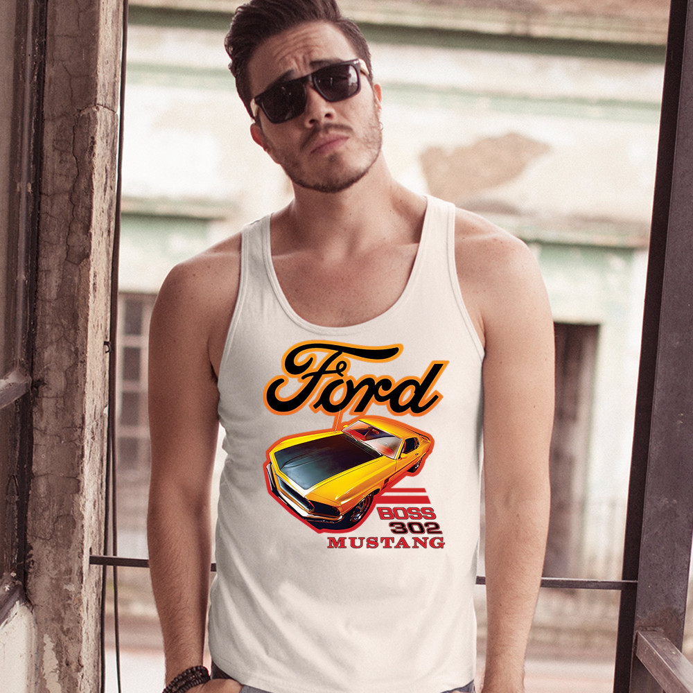 FORD BOSS 302 MUSTANG tank top vintage american muscle car licensed men's top white
