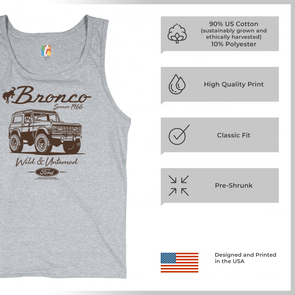 Discover the perfect gift for Ford Bronco enthusiasts with this officially licensed apparel. Highlighting "Bronco Since 1966" and "Wild and Untamed," the design captures the rugged charm of this iconic off-road SUV. Ideal for classic car lovers, outdoor explorers, and 4x4 adventurers, this vintage collectible represents the adventure-ready spirit of the Bronco.
