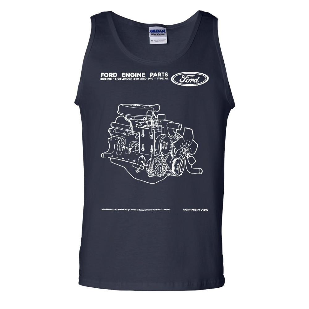 FORD ENGINE PARTS tank top 6 cylinder motor top navy blue
