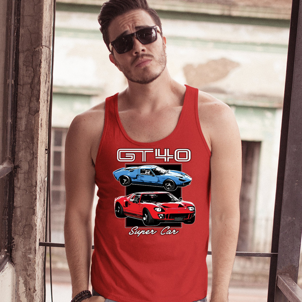 FORD GT40 tank top american vintage super car retro licensed men's top red