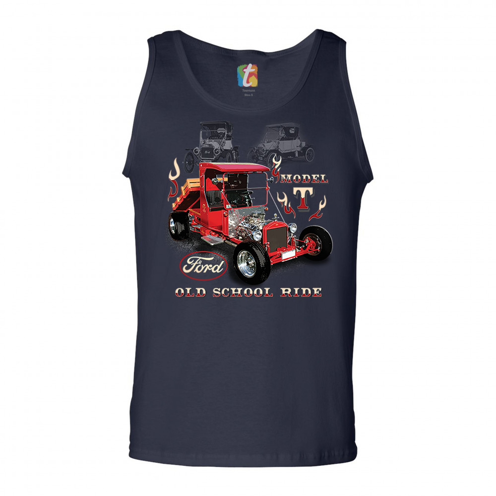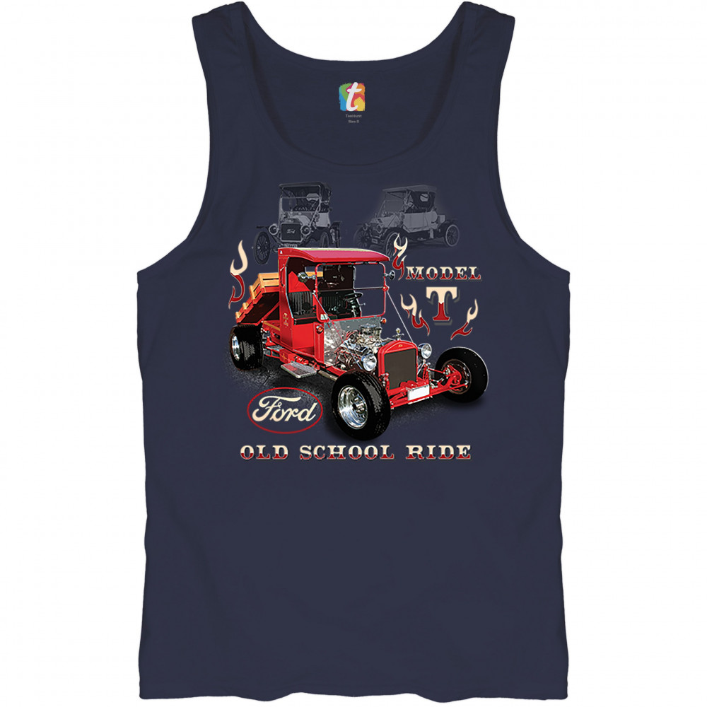 A print featuring a Ford Model T modified as a hot rod. The are also two transparent pictures of original T Models in the background. The print features the Ford logo and says: "Model T, Old School Ride". A great choice for anyone who is a fan of old sch