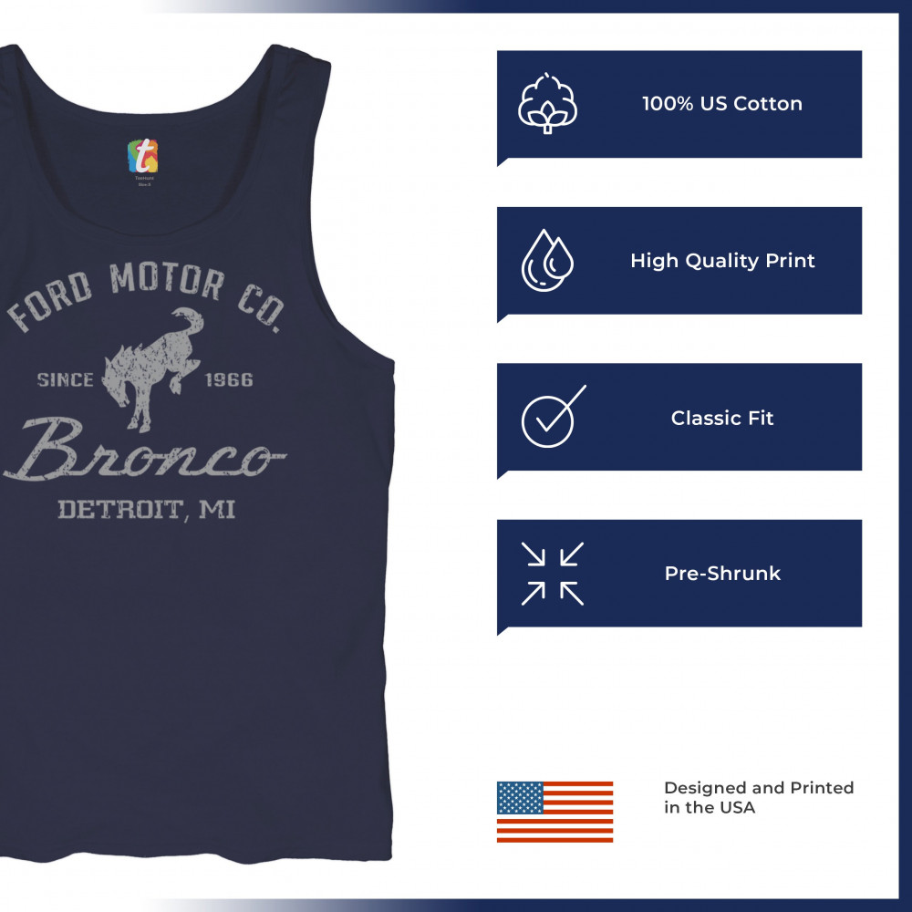 Celebrate the Ford Bronco legacy with this vintage-inspired design, highlighting Detroit’s iconic SUV since 1966. This officially licensed Ford Motor Co. merchandise is a tribute to the adventure-ready, rugged SUV lifestyle that Bronco lovers cherish. Whether you’re a classic car collector, an off-road enthusiast, or simply appreciate retro automotive art, this design represents timeless American muscle and durability.