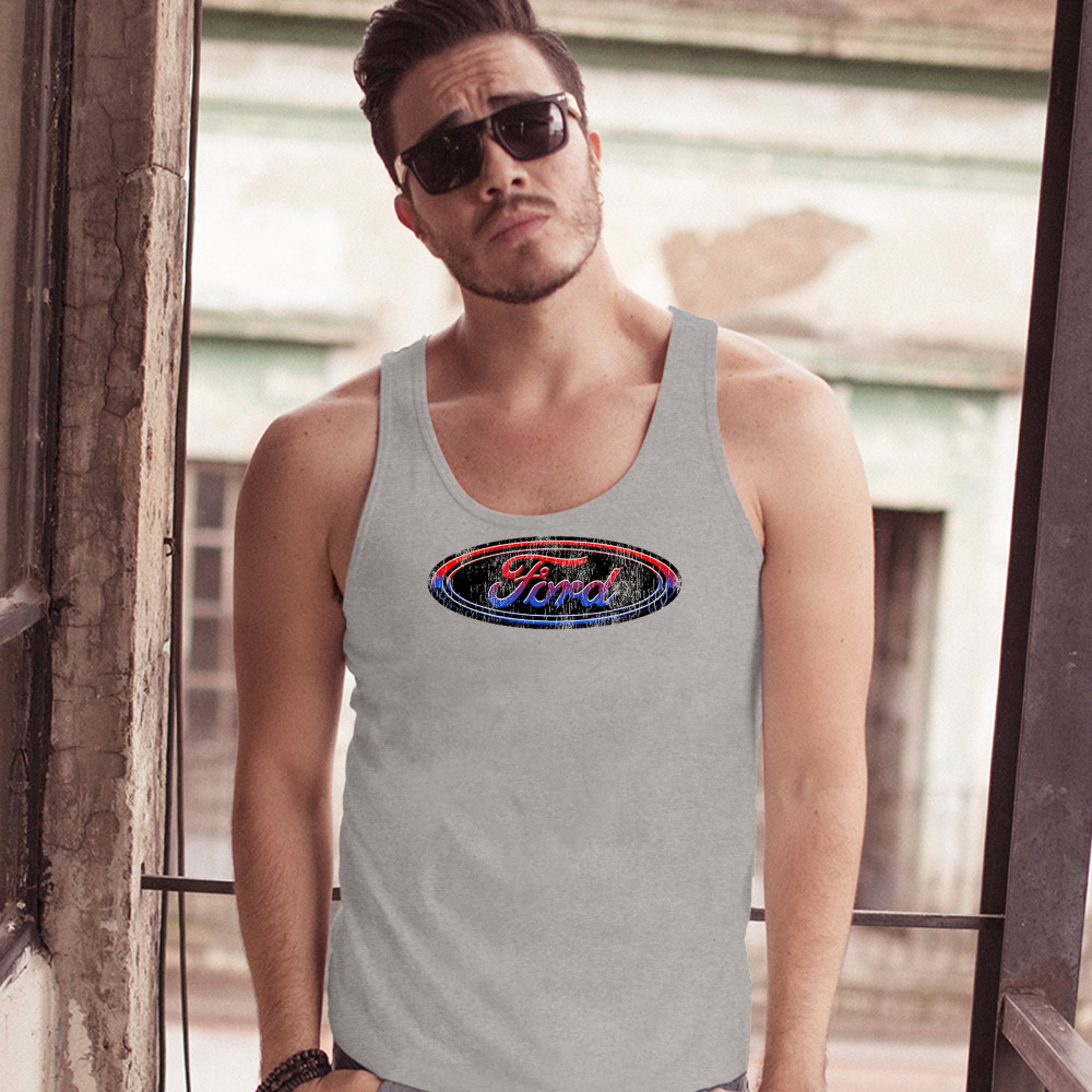 FORD MOTOR COMPANY LOGO tank top american made cars licensed men's top gray