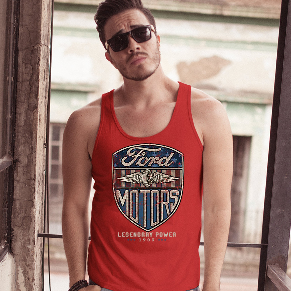 FORD MOTORS LEGENDARY POWER tank top fomoco licensed automotive men's top red