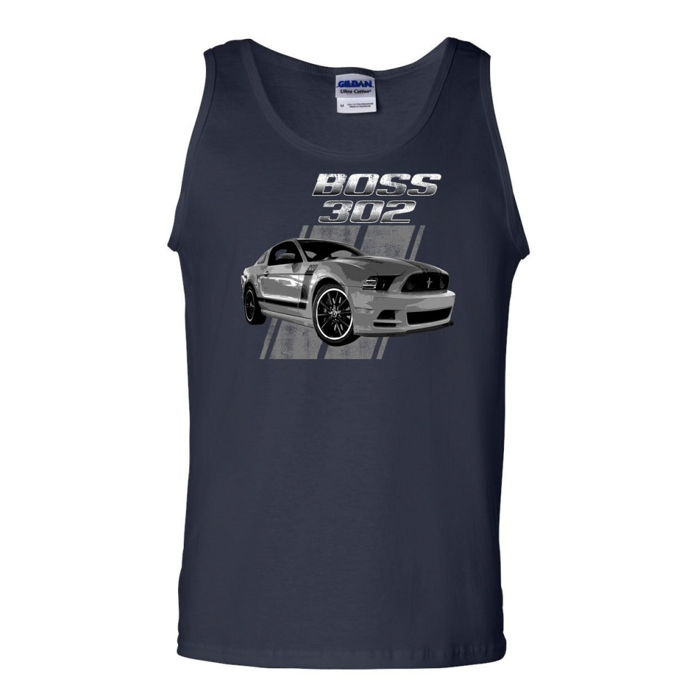 FORD MUSTANG BOSS 302 tank top 50 years anniversary muscle car sleeveless navy blue