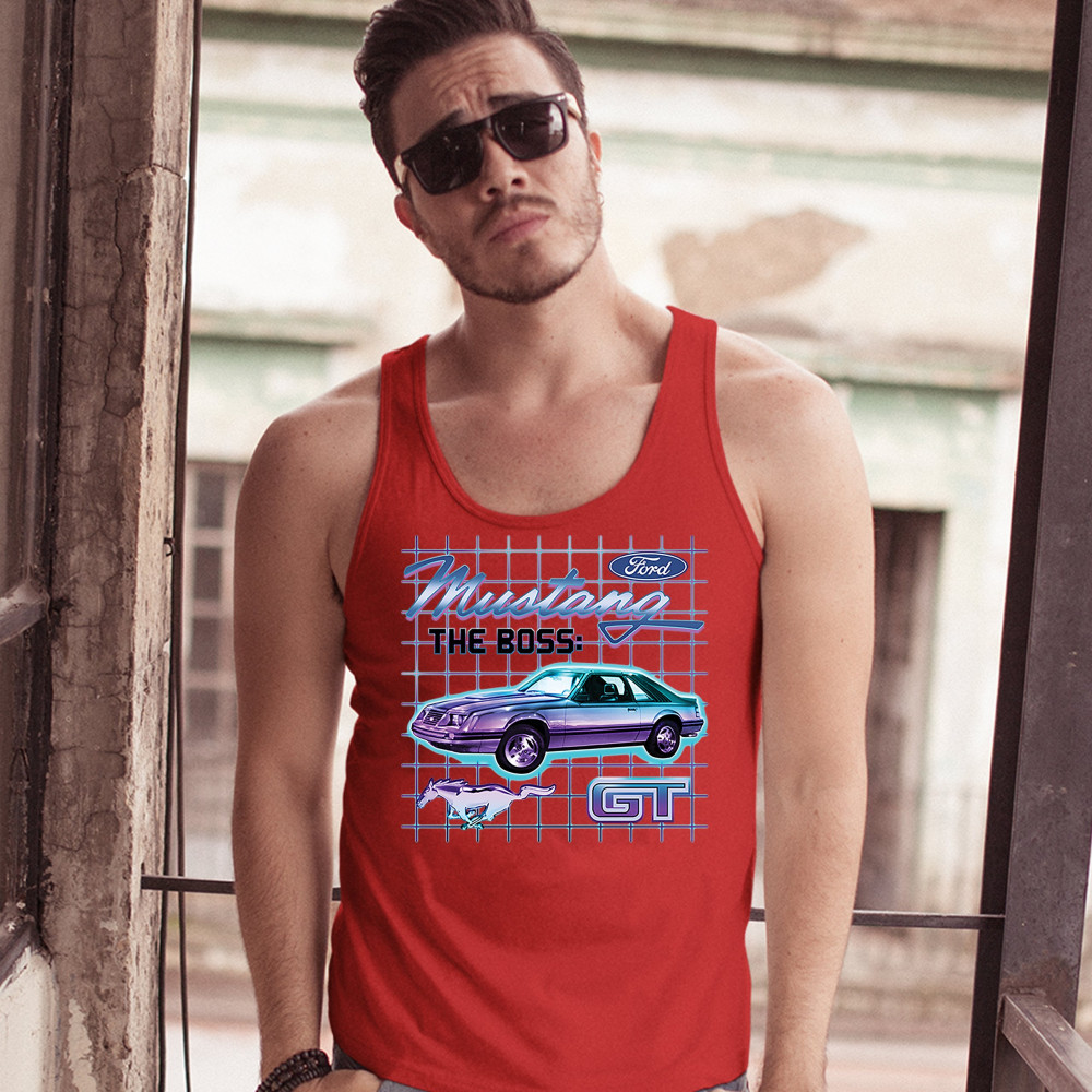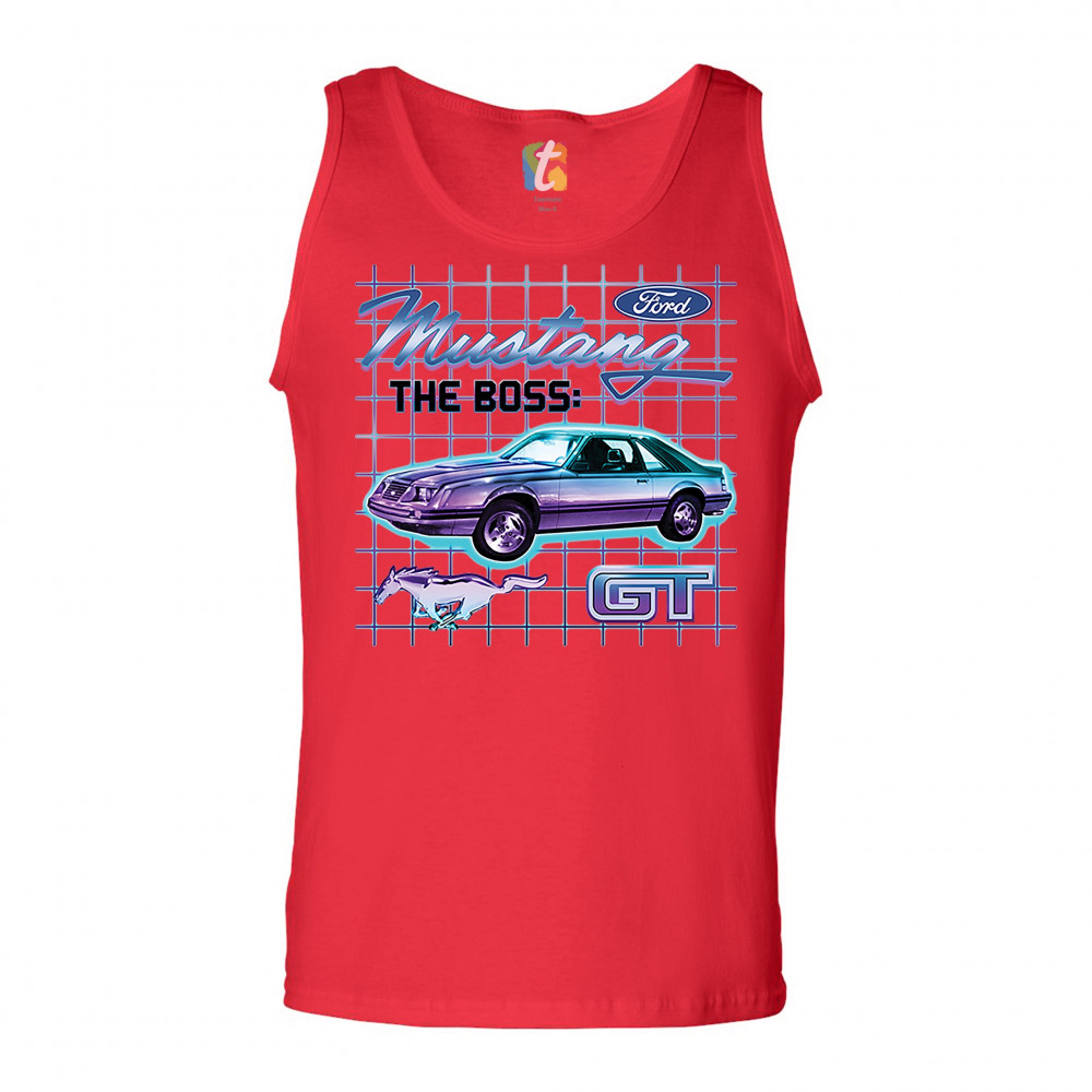 FORD MUSTANG GT THE BOSS tank top vintage neon car retro licensed men's top red