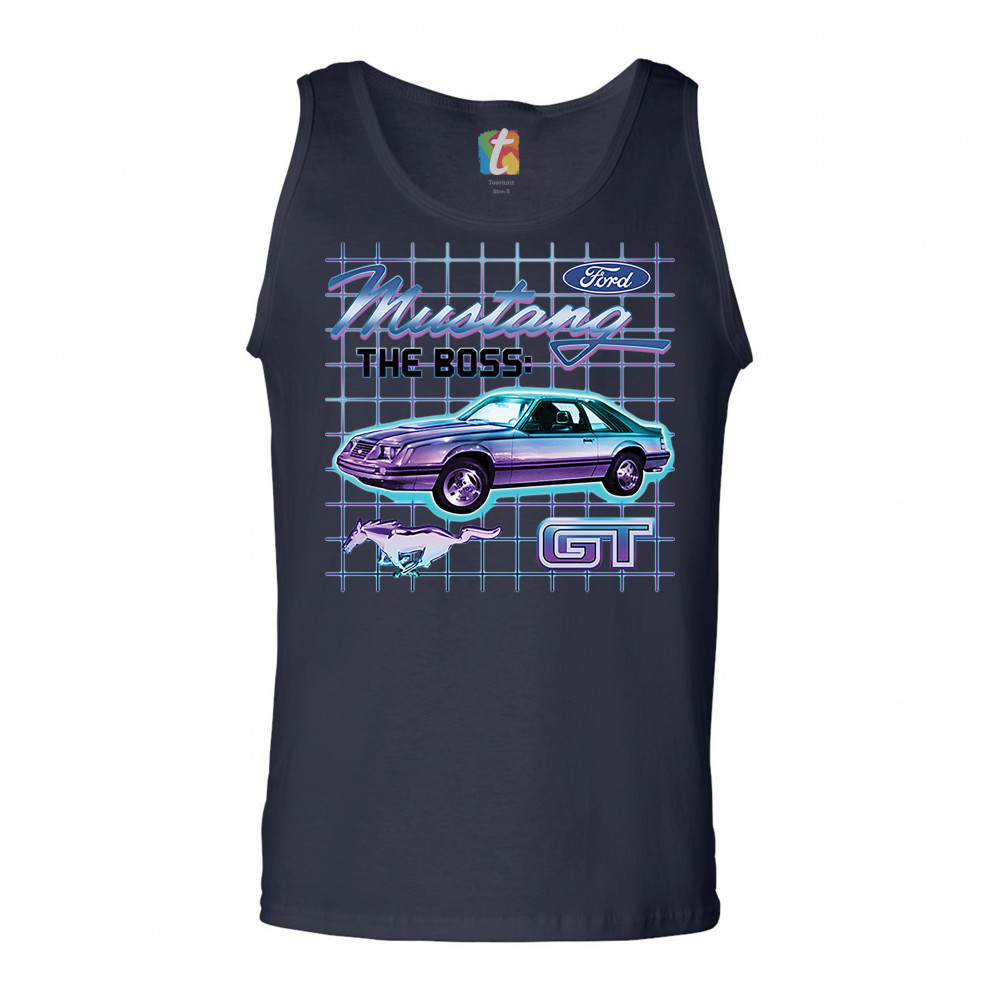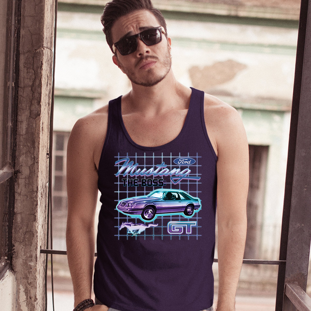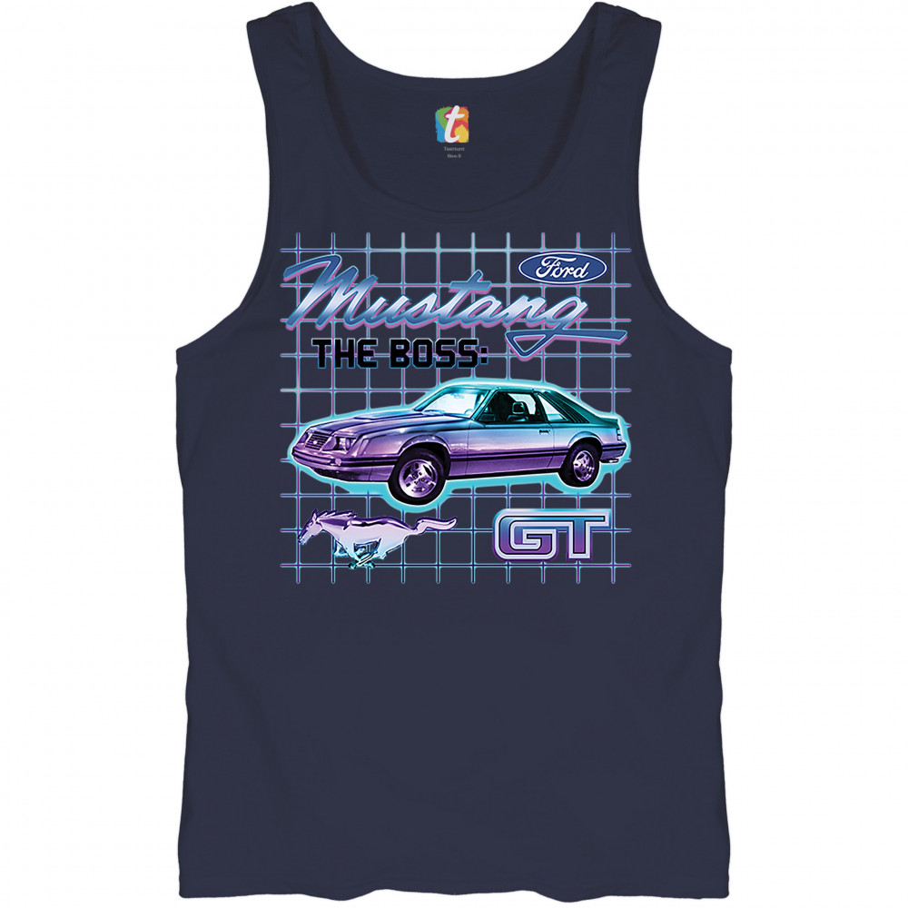 FORD MUSTANG GT THE BOSS tank top vintage neon car retro licensed men's top navy blue