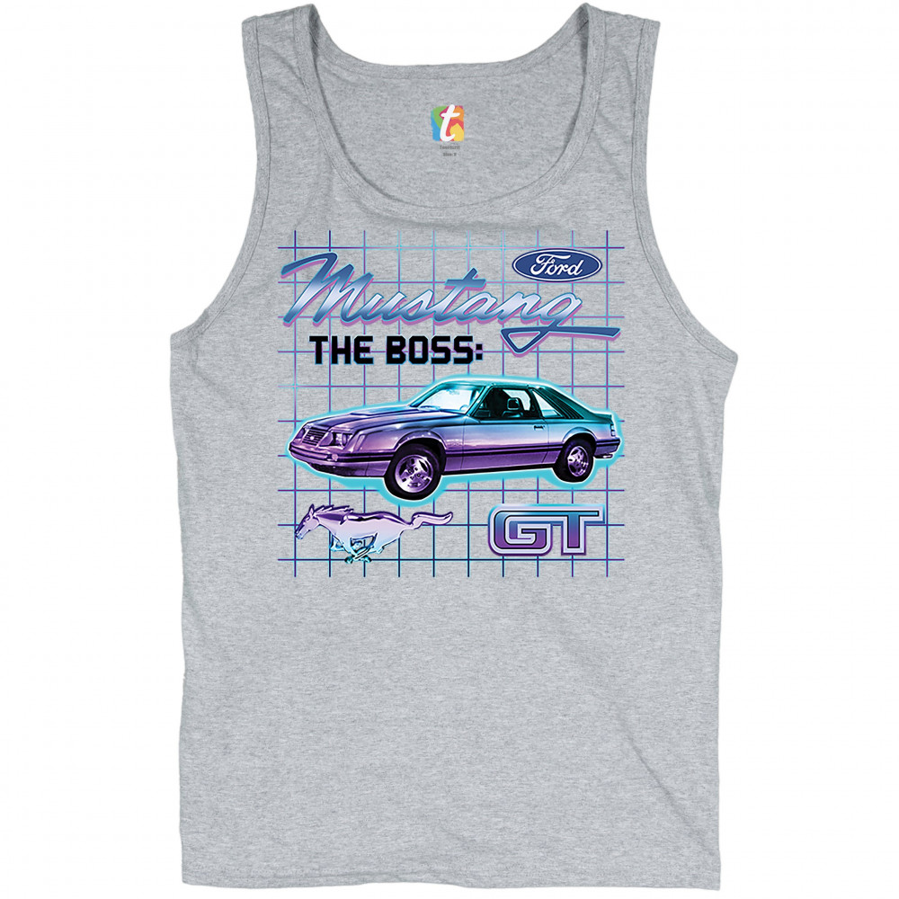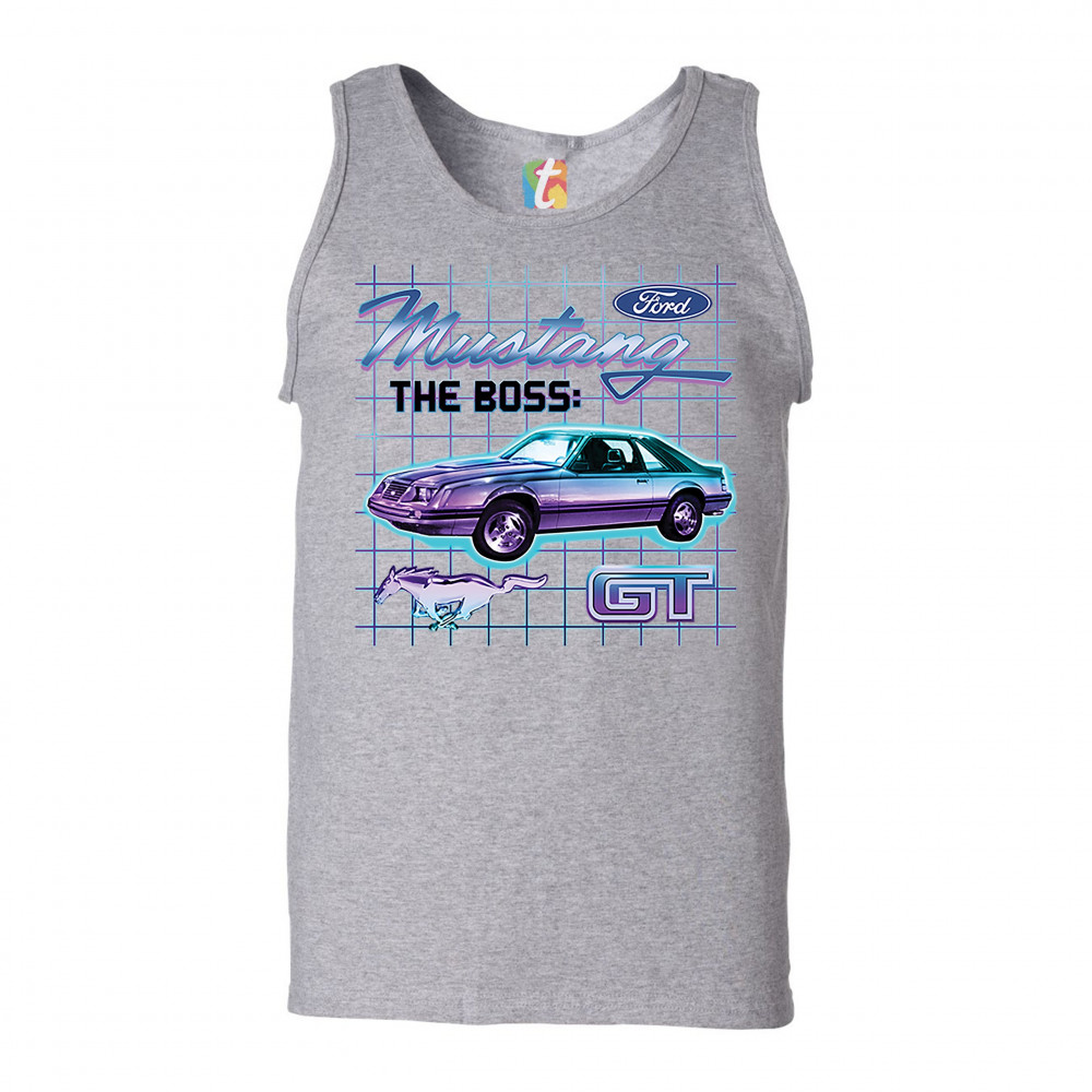 FORD MUSTANG GT THE BOSS tank top vintage neon car retro licensed men's top gray