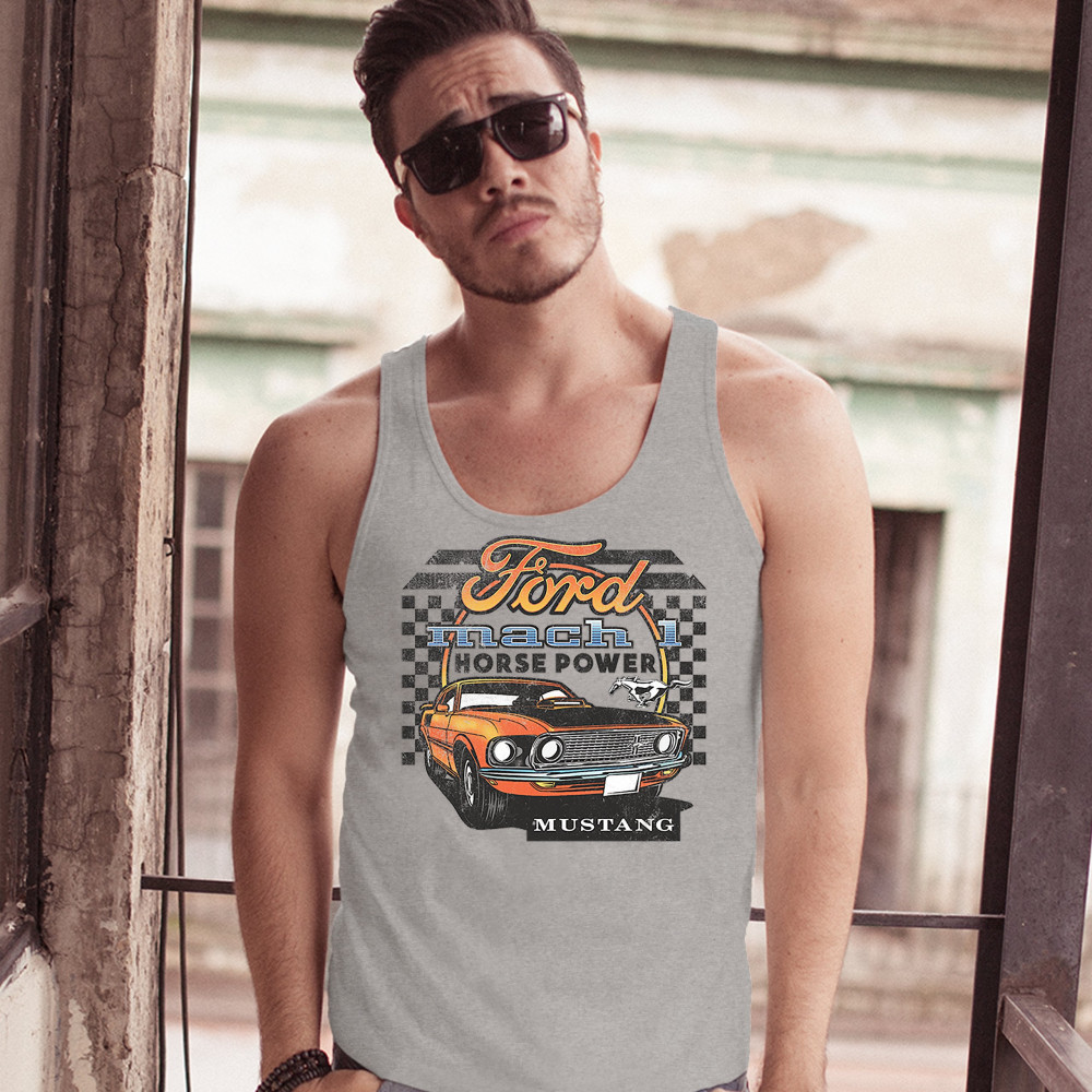 FORD MUSTANG MACH 1 tank top horse power american muscle licensed men's top gray
