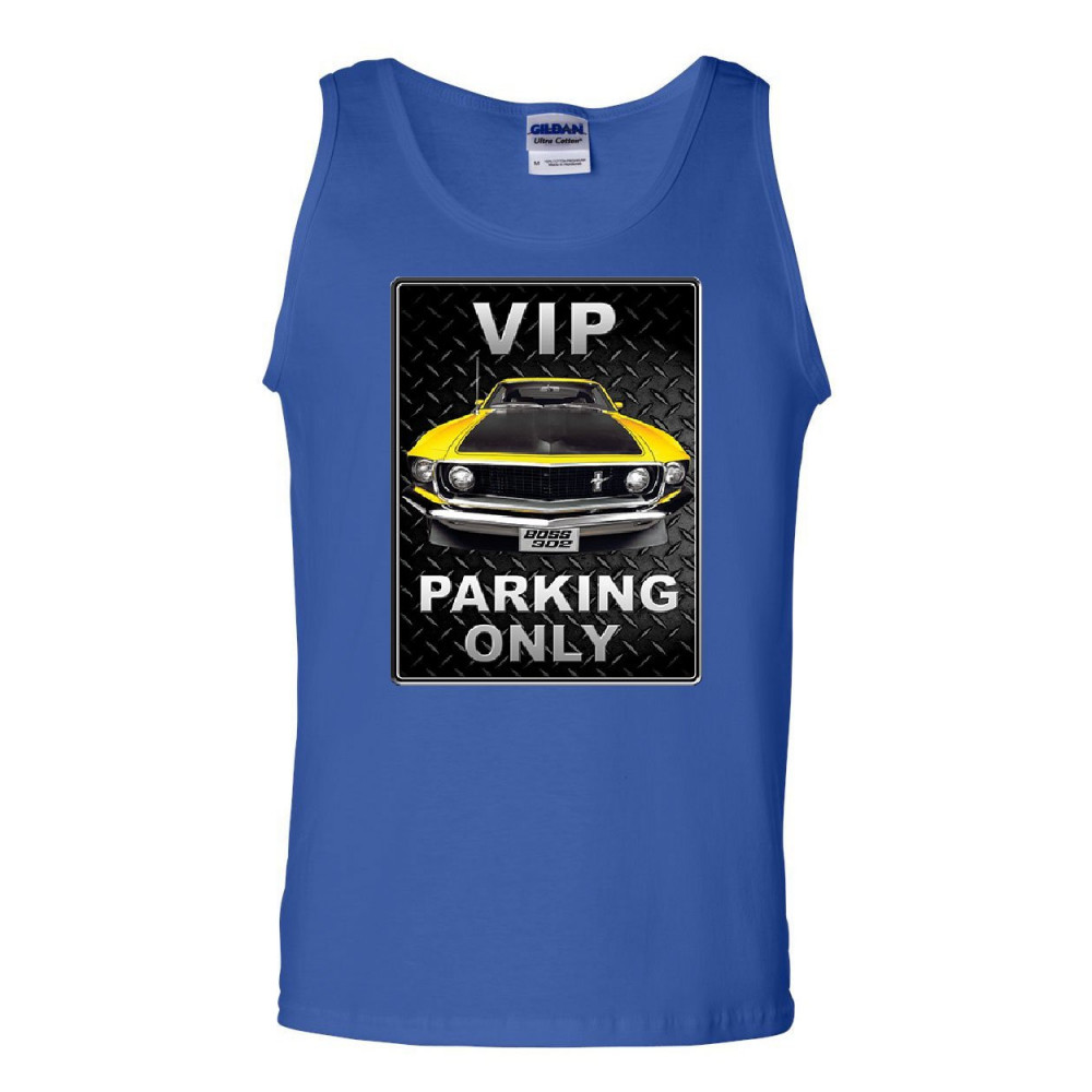 VIP PARKING ONLY ford mustang tank top yellow boss 302 muscle car sleeveless blue