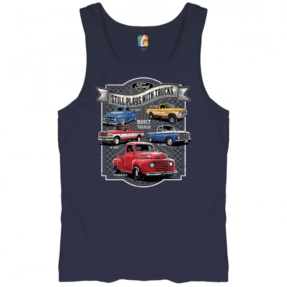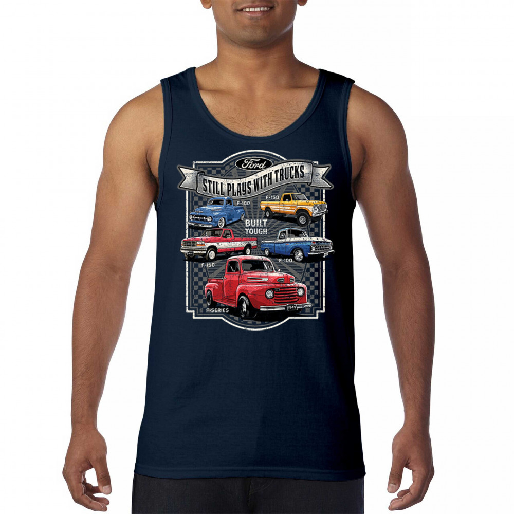 Features classic Ford F-Series trucks from 1949 to F-150. Great for vintage truck fans, garage wear, car shows, and collectors who love pickups.
