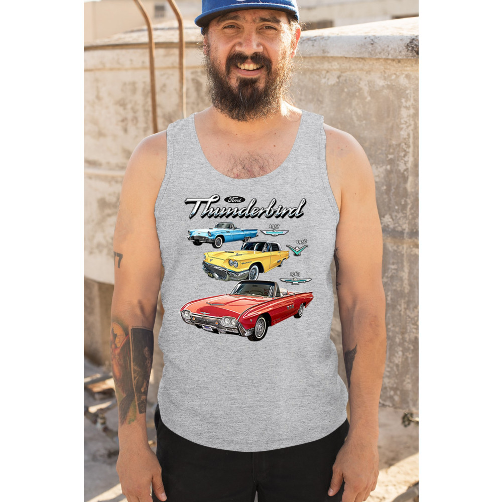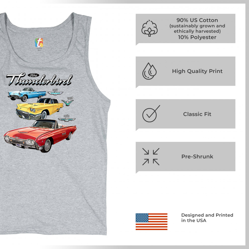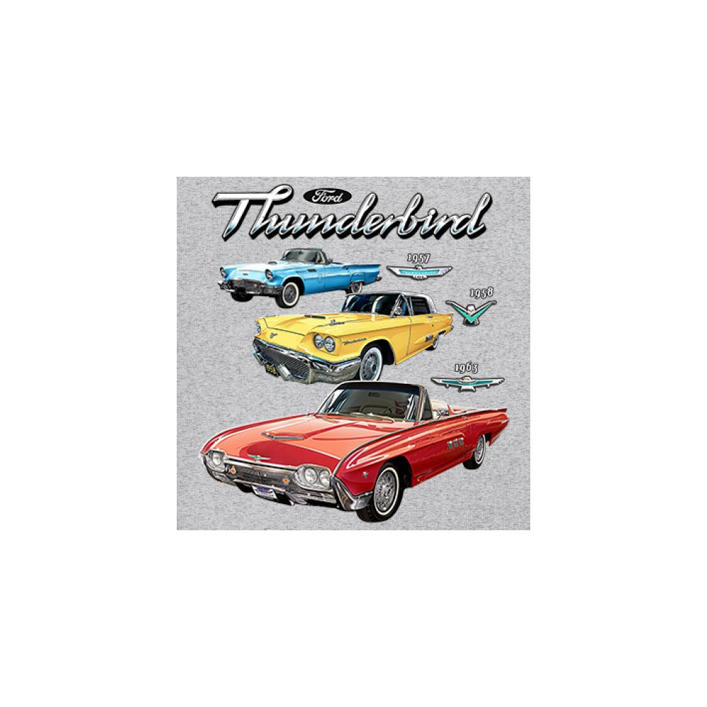 Iconic Ford Thunderbird design with 1957, 1958, and 1963 models. A vintage tribute for car collectors and American muscle fans.