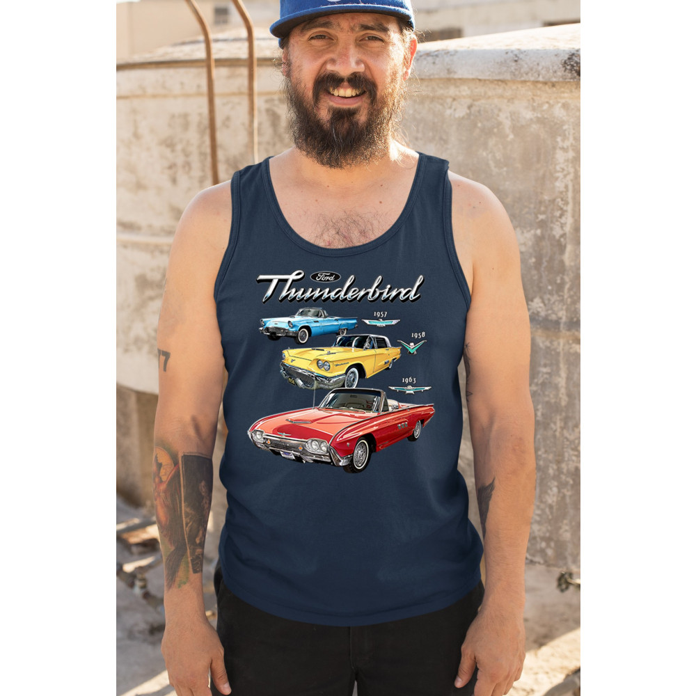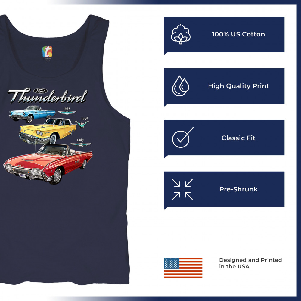 Iconic Ford Thunderbird design with 1957, 1958, and 1963 models. A vintage tribute for car collectors and American muscle fans.