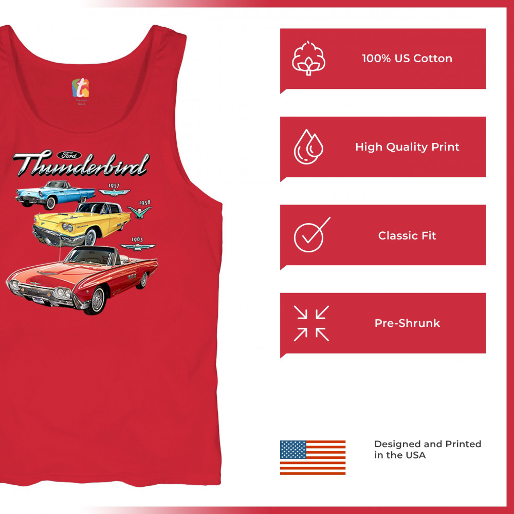 Iconic Ford Thunderbird design with 1957, 1958, and 1963 models. A vintage tribute for car collectors and American muscle fans.