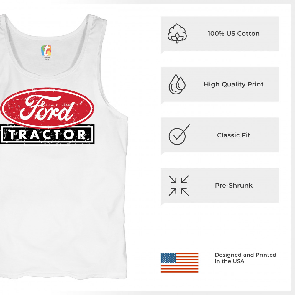 Classic Ford Tractor logo design in rustic red. A vintage tribute for farmers, collectors, and fans of agricultural heritage.