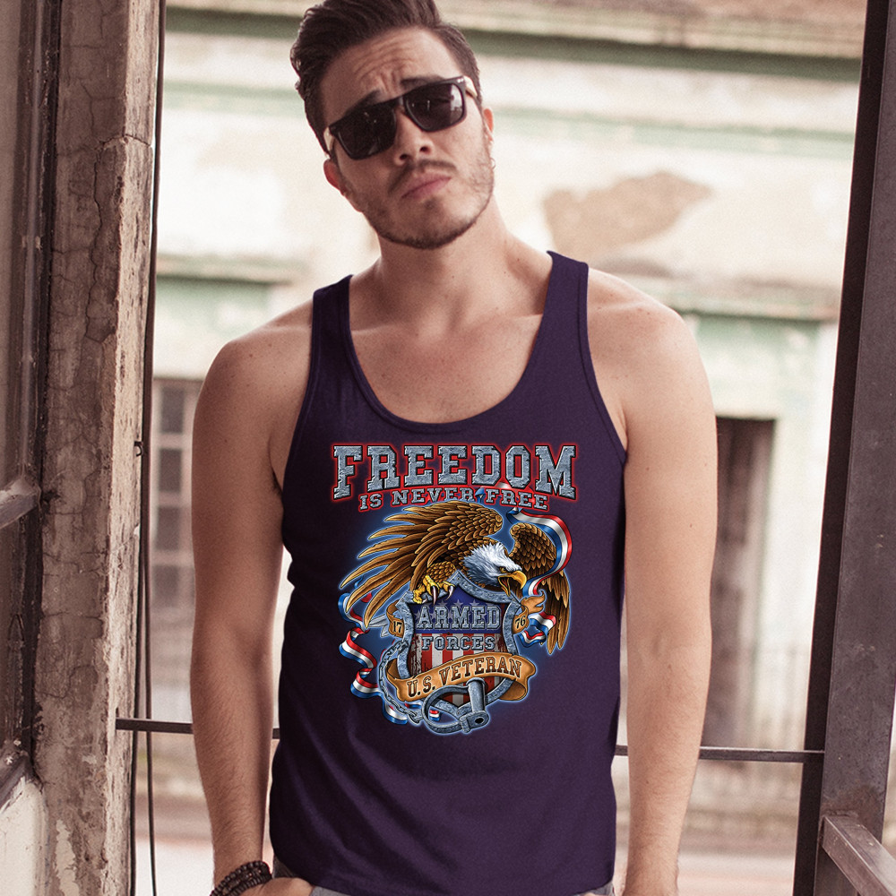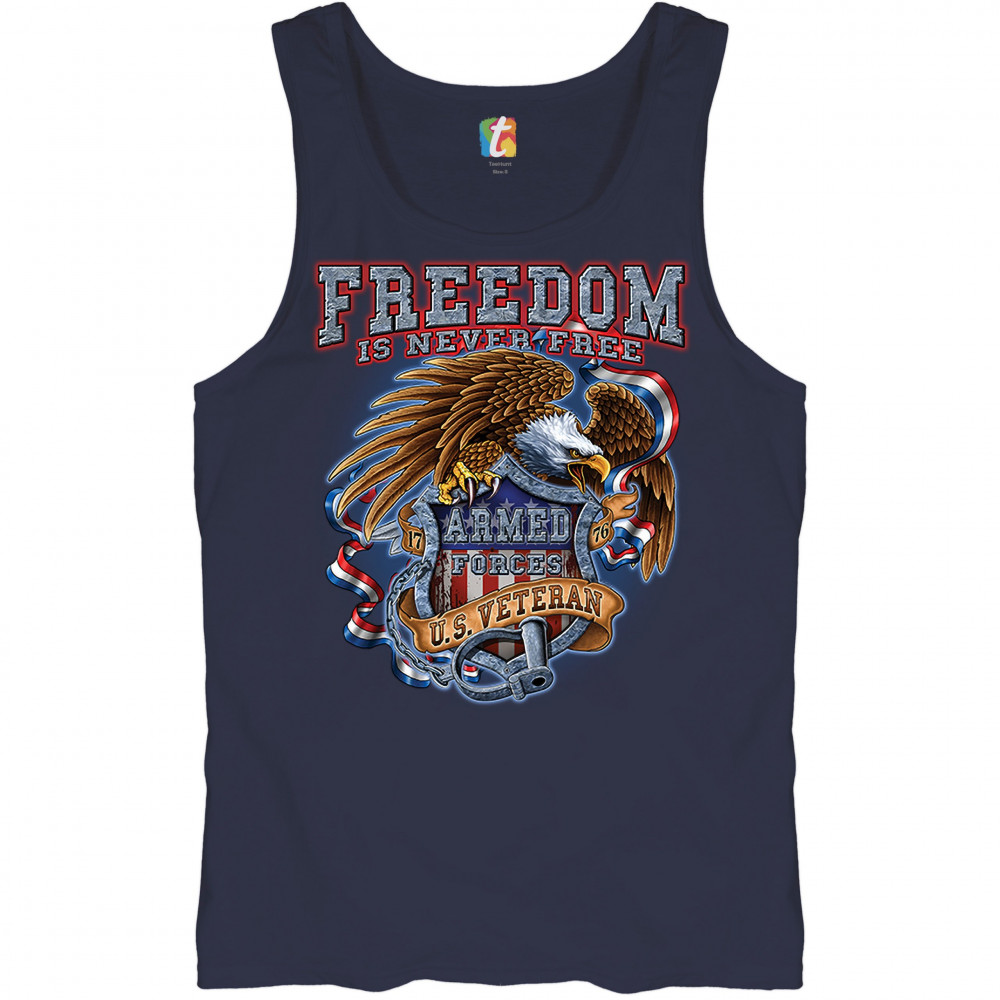 FREEDOM IS NEVER FREE tank top u.s. veteran armed forces military men's top navy blue