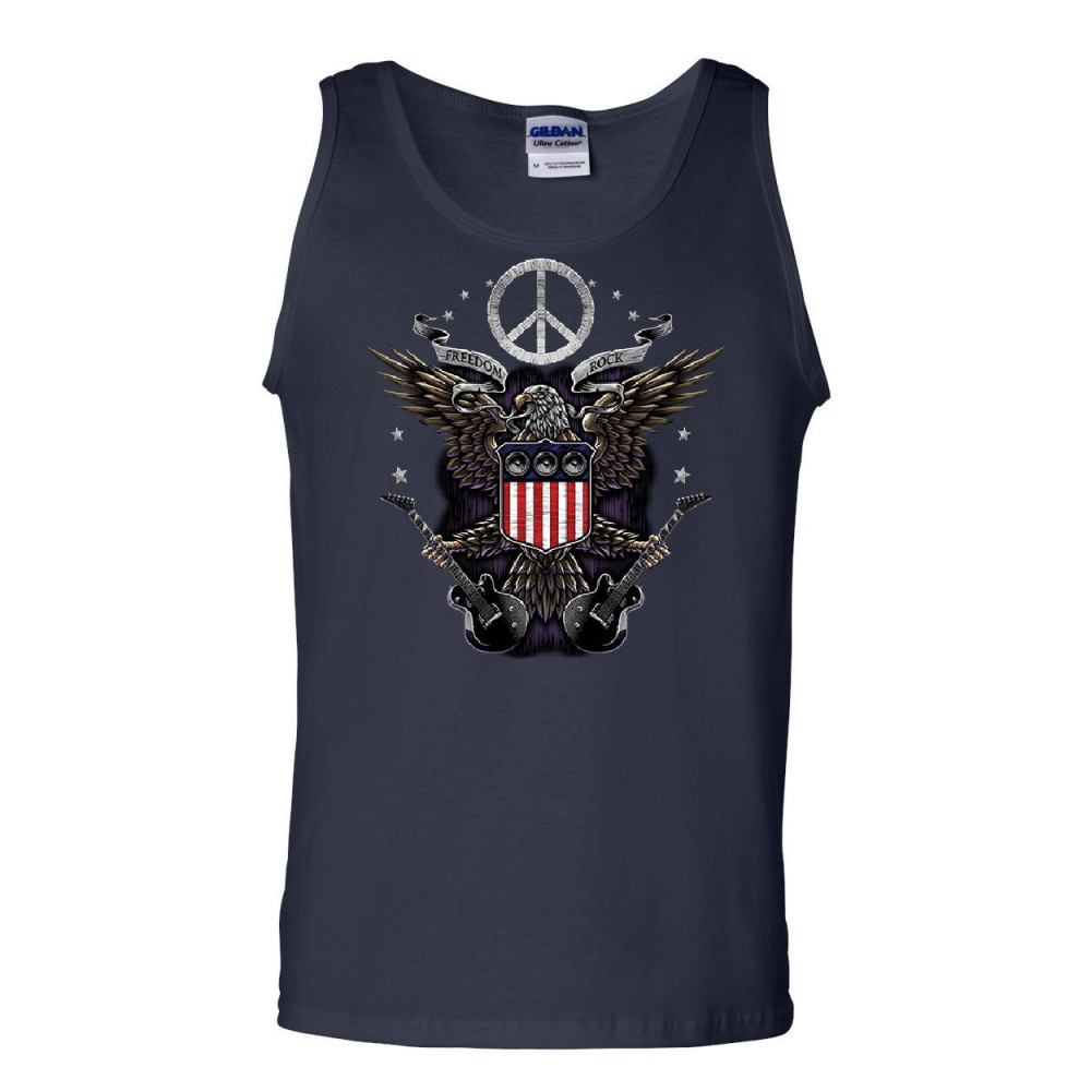 FREEDOM ROCK tank top peace american flag bald eagle 4th of july sleeveless navy blue