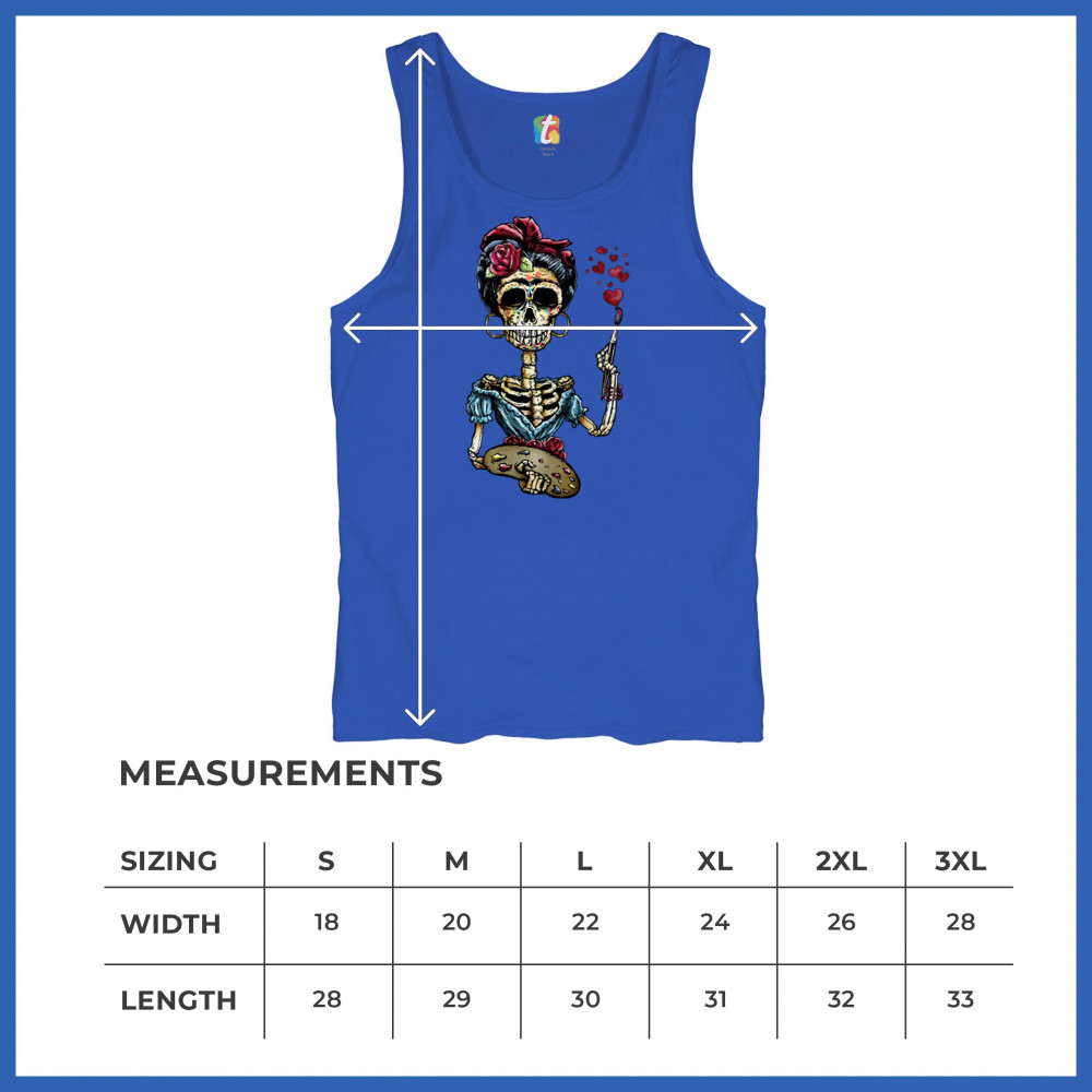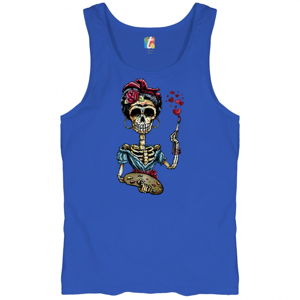 FRIDA KAHLO SUGAR SKULL tank top calavera mexican day of the dead men's top royal blue