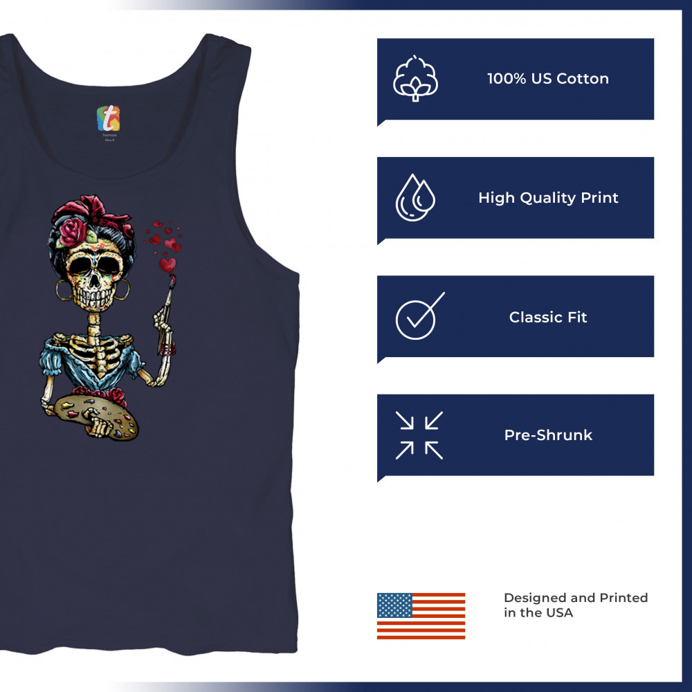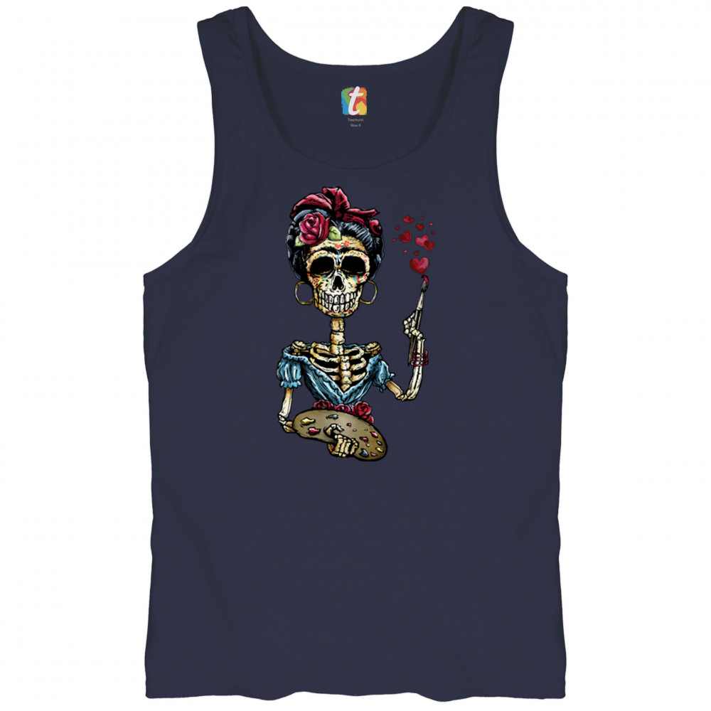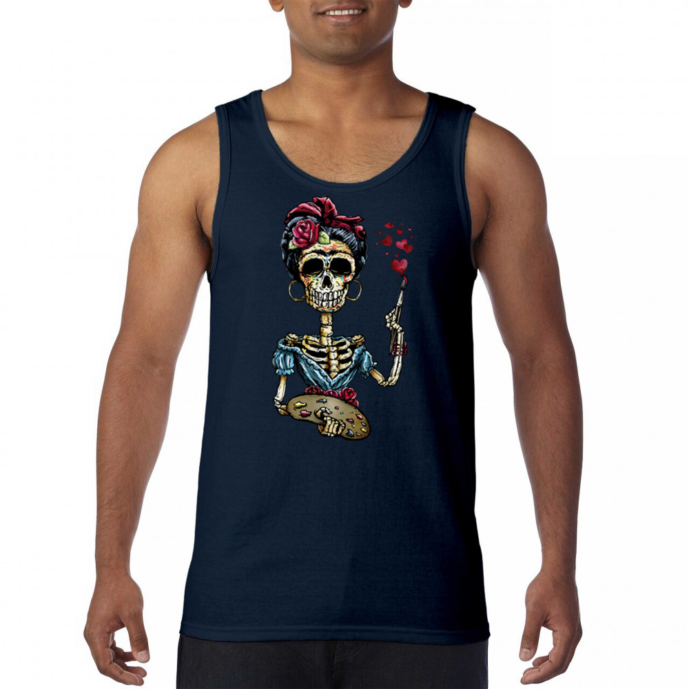 FRIDA KAHLO SUGAR SKULL tank top calavera mexican day of the dead men's top navy blue