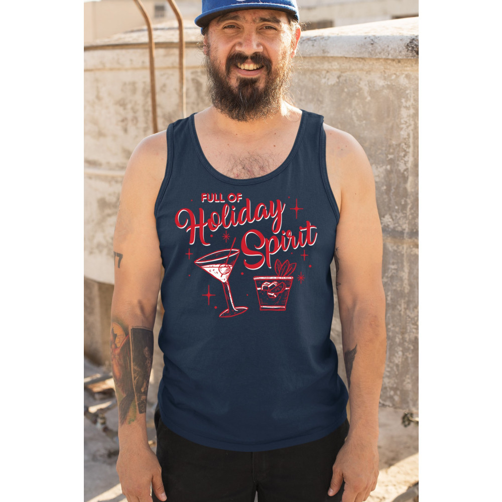 Bring the festive vibes to your holiday season with the "Full of Holiday Spirit" design. This playful print is perfect for office parties, secret Santa gifts, and cozy gatherings, adding a fun and jolly touch to any holiday event. Ideal for matching pajamas, ugly sweater contests, or as a unique present, it’s crafted to spread cheer and humor. From Xmas morning to holiday parties, this design is all about making merry memories with a festive flair.