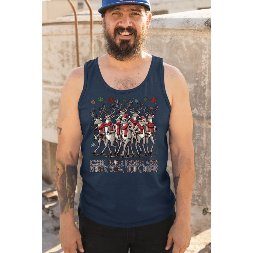 Funny drinking-reindeer Christmas design perfect for parties, bar crawls, and festive adult humor. Great for holiday laughs and spirited winter fun.