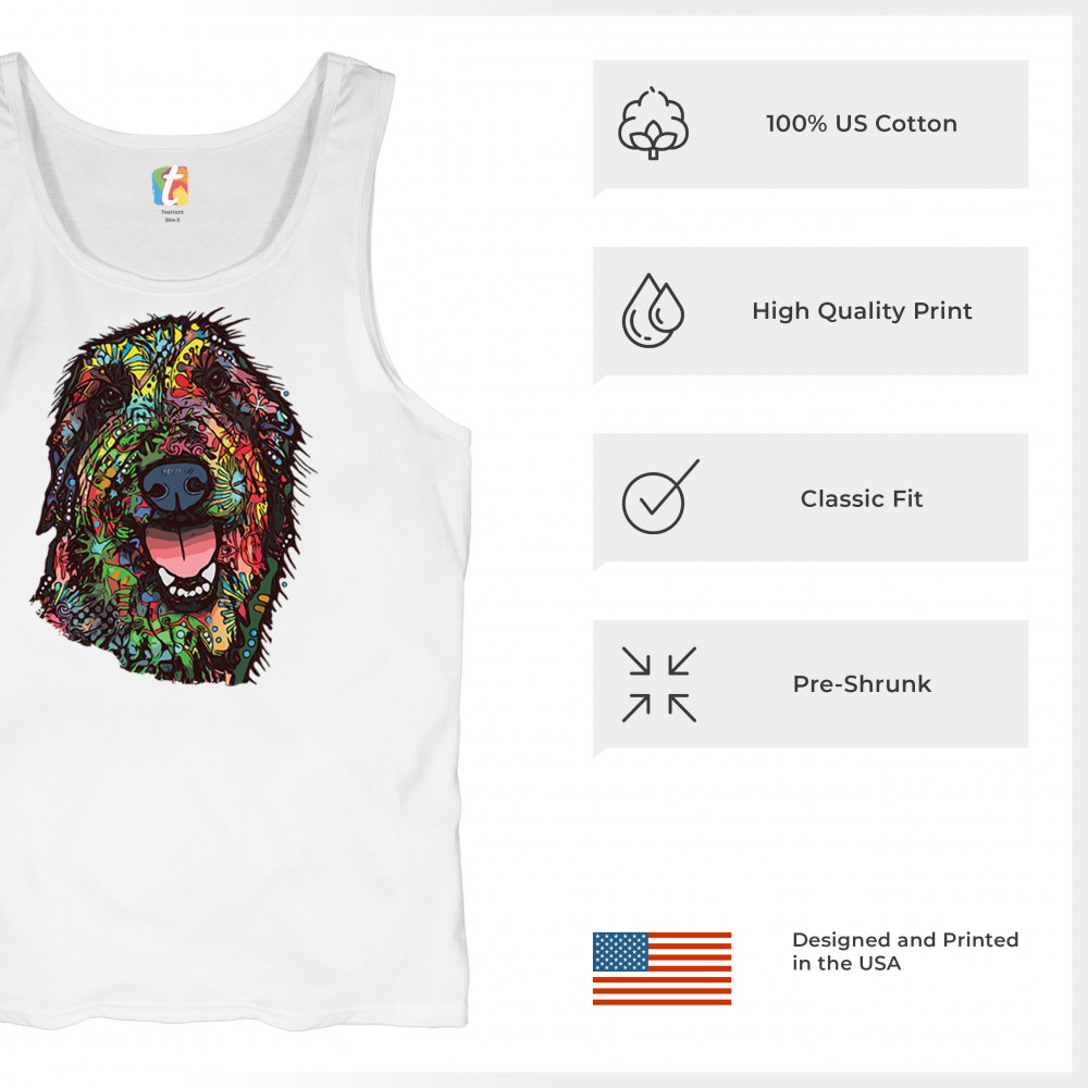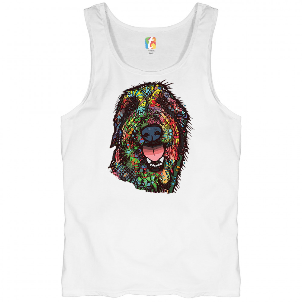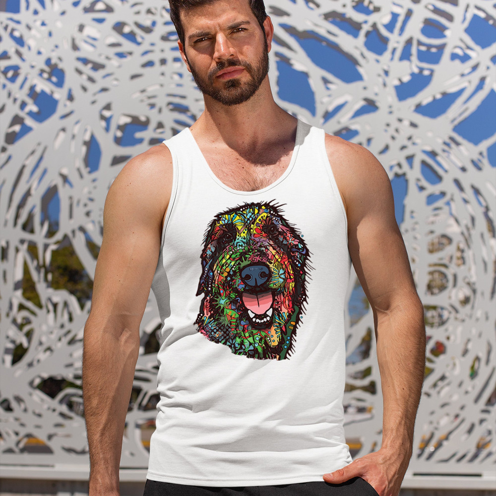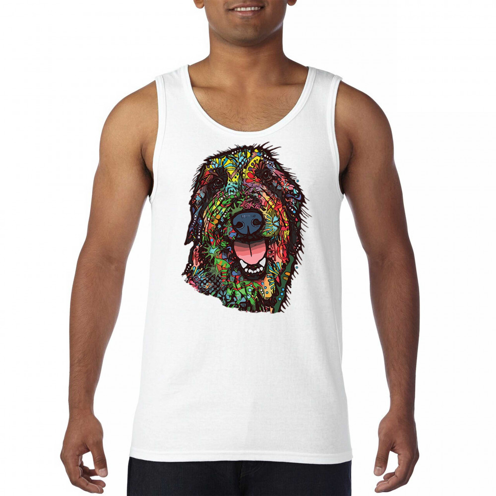 FUNNY FEELING HAPPY DOG FACE tank top dean russo cheerful pet men's top white