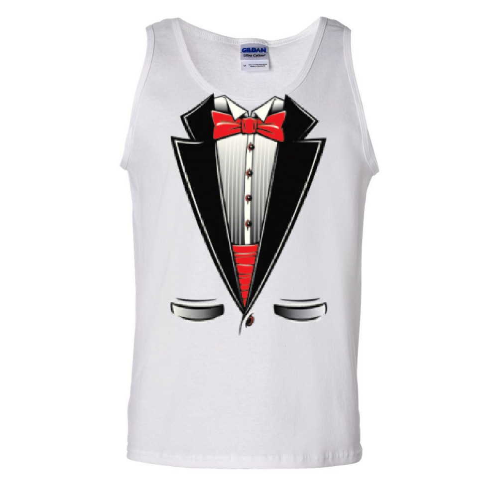FUNNY TUXEDO BOW TIE tank top tux wedding party white