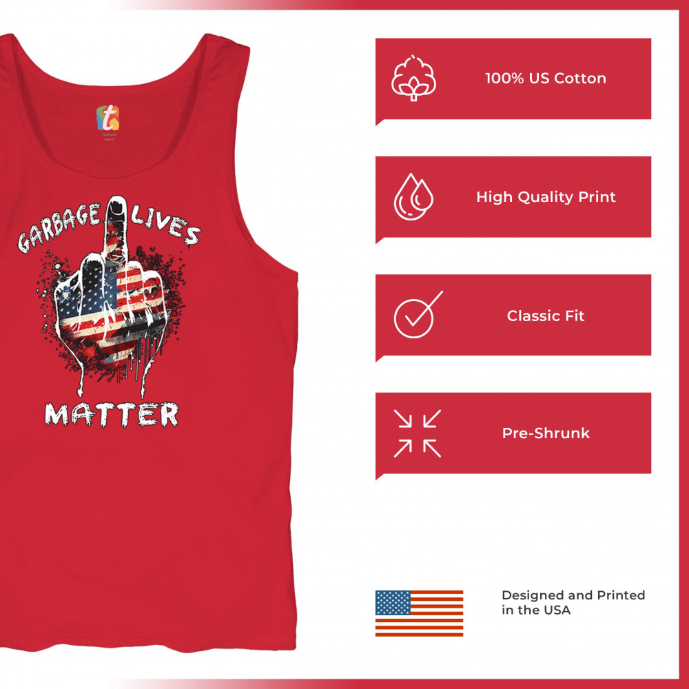 The "Garbage Lives Matter" design is a fearless expression of American values and pride. With the American flag as its centerpiece, this bold and patriotic design speaks volumes to Trump supporters, conservatives, and those who believe in the people's mandate. Join the fight for America First, never surrender, and celebrate the Red Wave movement with this striking statement piece.