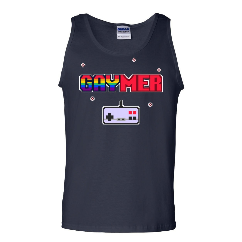 QUEER GAYMER CONTROLLER gaymer tank top lgbt queer rainbow gay gaming console controller sleeveless navy blue