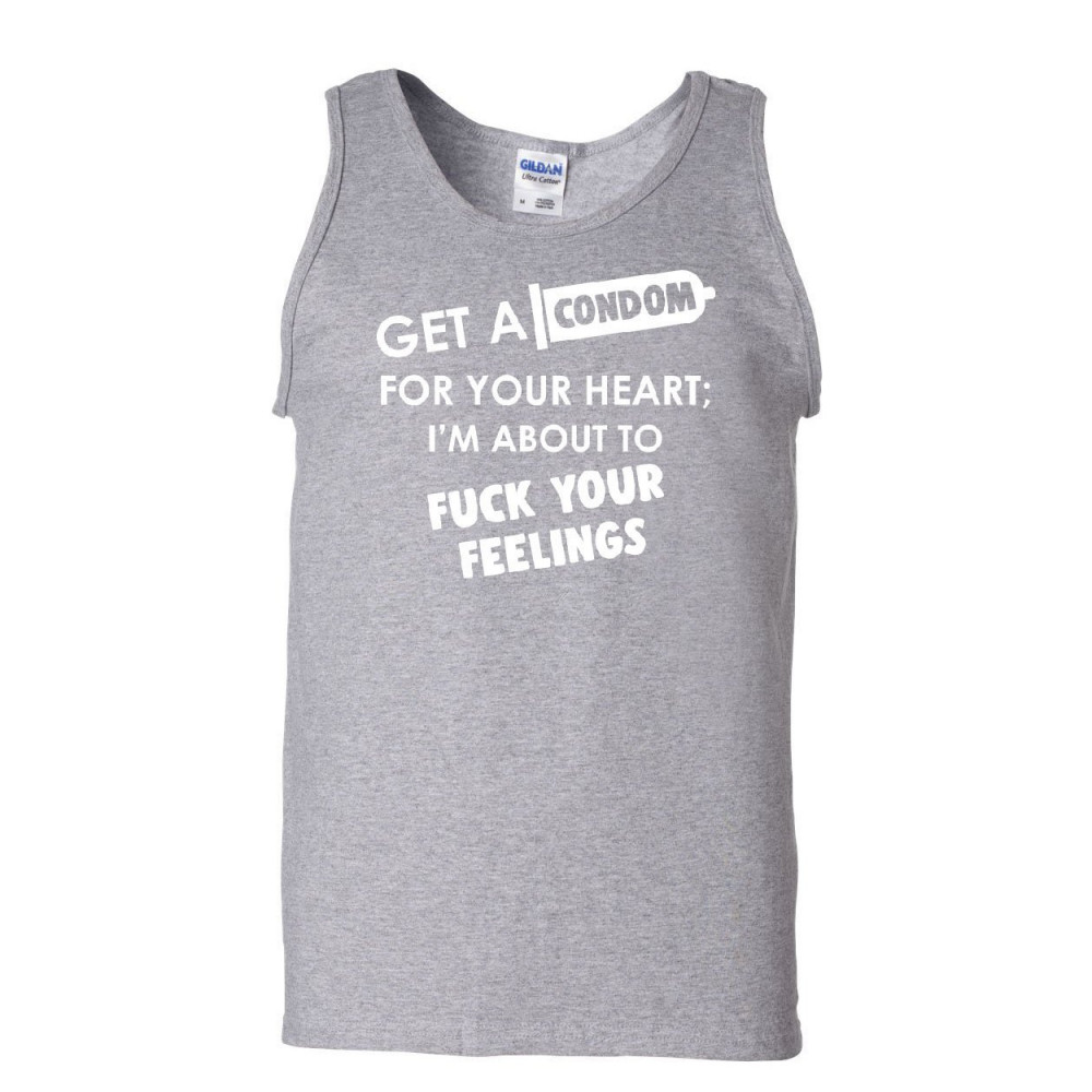 GET A CONDOM FOR YOUR HEART tank top funny rude offensive humor sleeveless gray