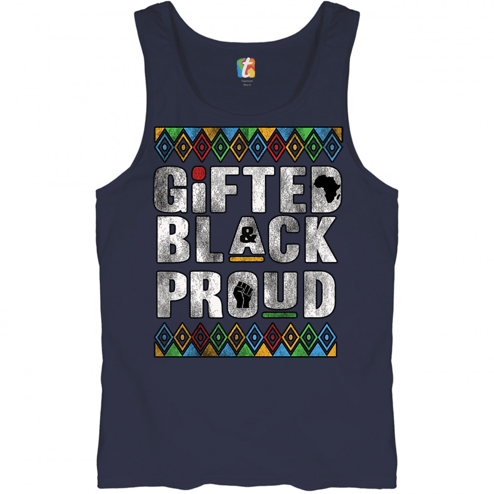 GIFTED BLACK & PROUD tank top african american black lives matter men's top navy blue